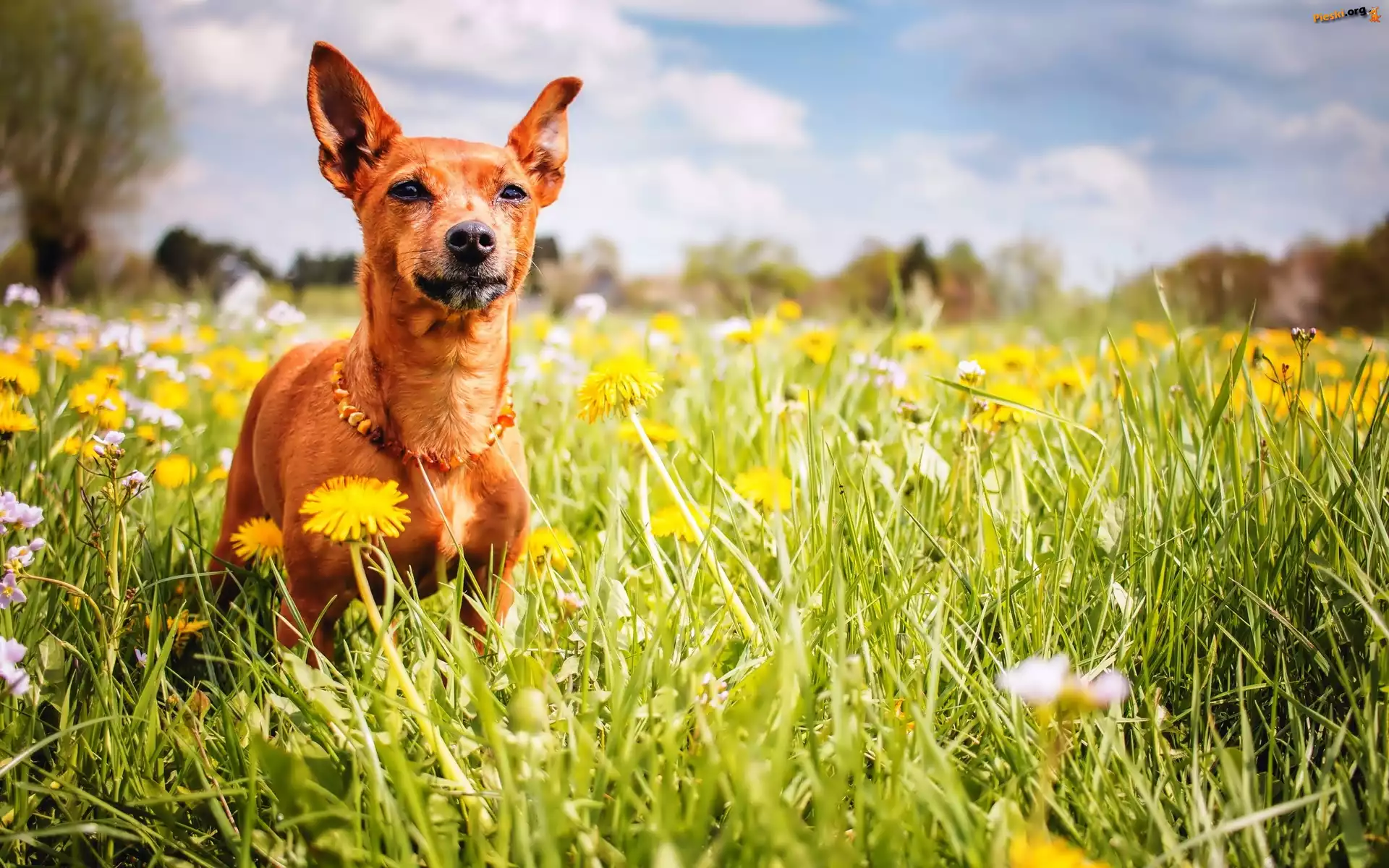 Piesek, Łąka, Mlecze, Pieski