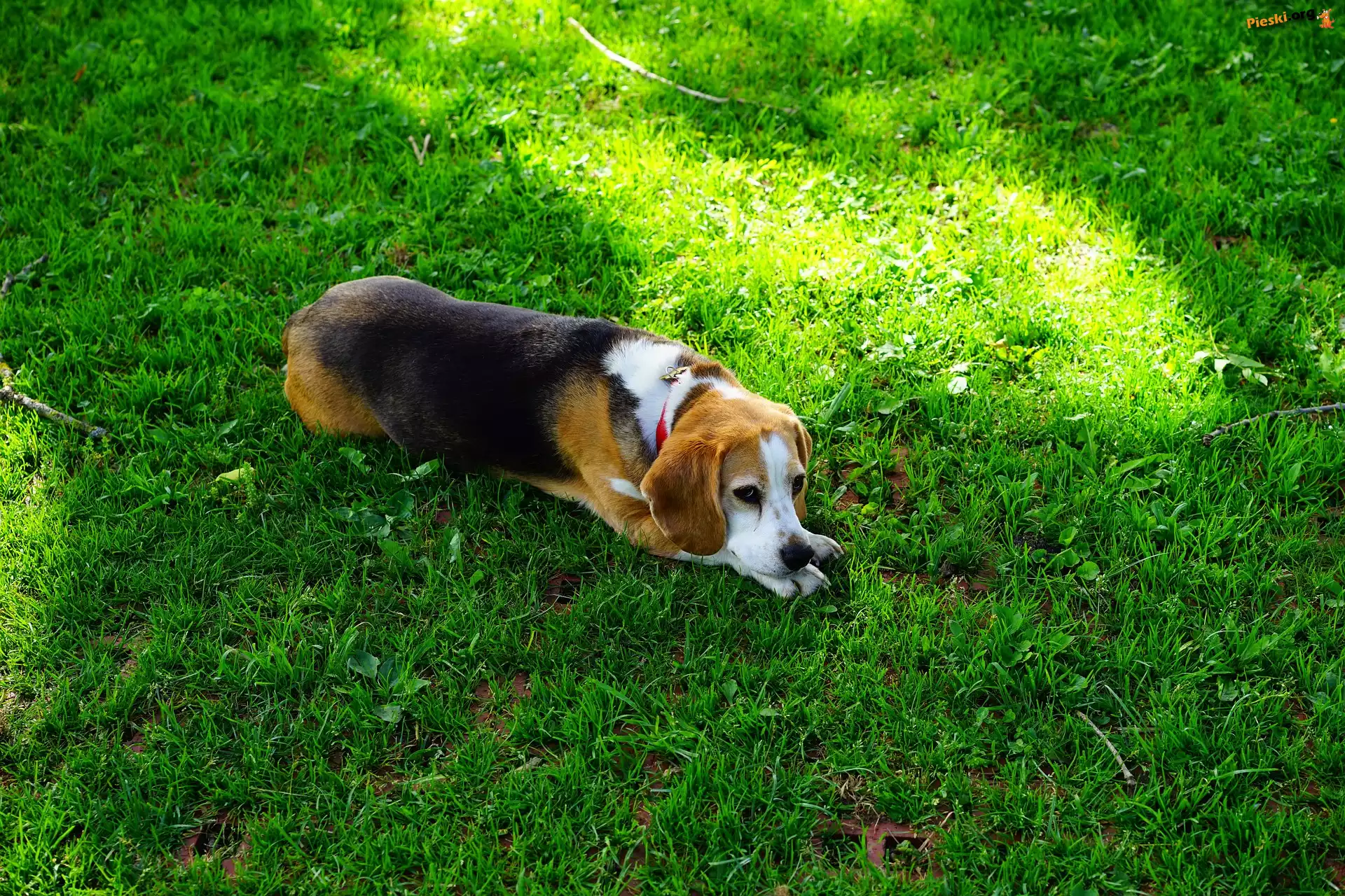 Leżący, Beagle, Trawa