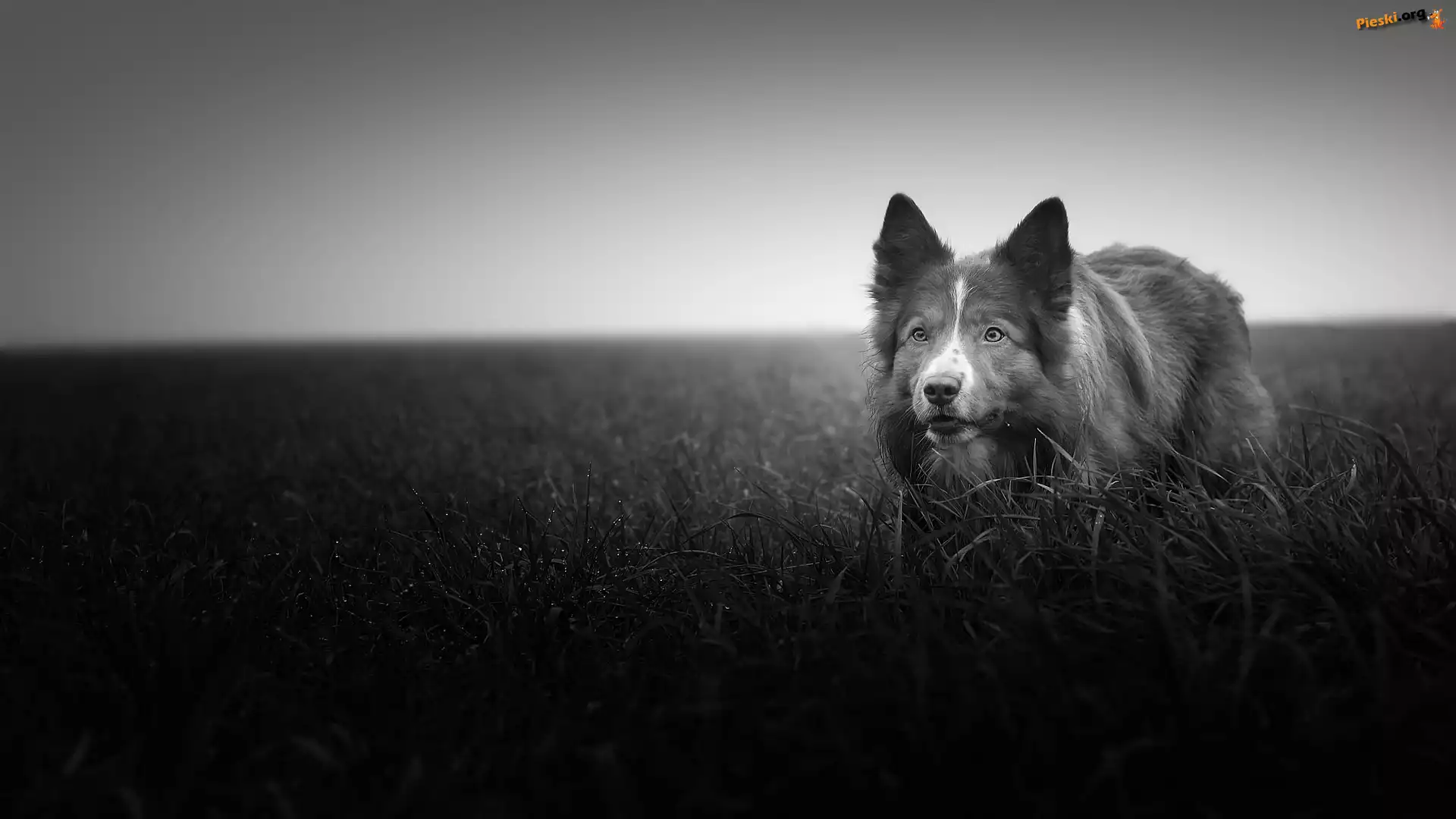 Border collie, Łąka, Trawa, Czarno-białe, Pieski