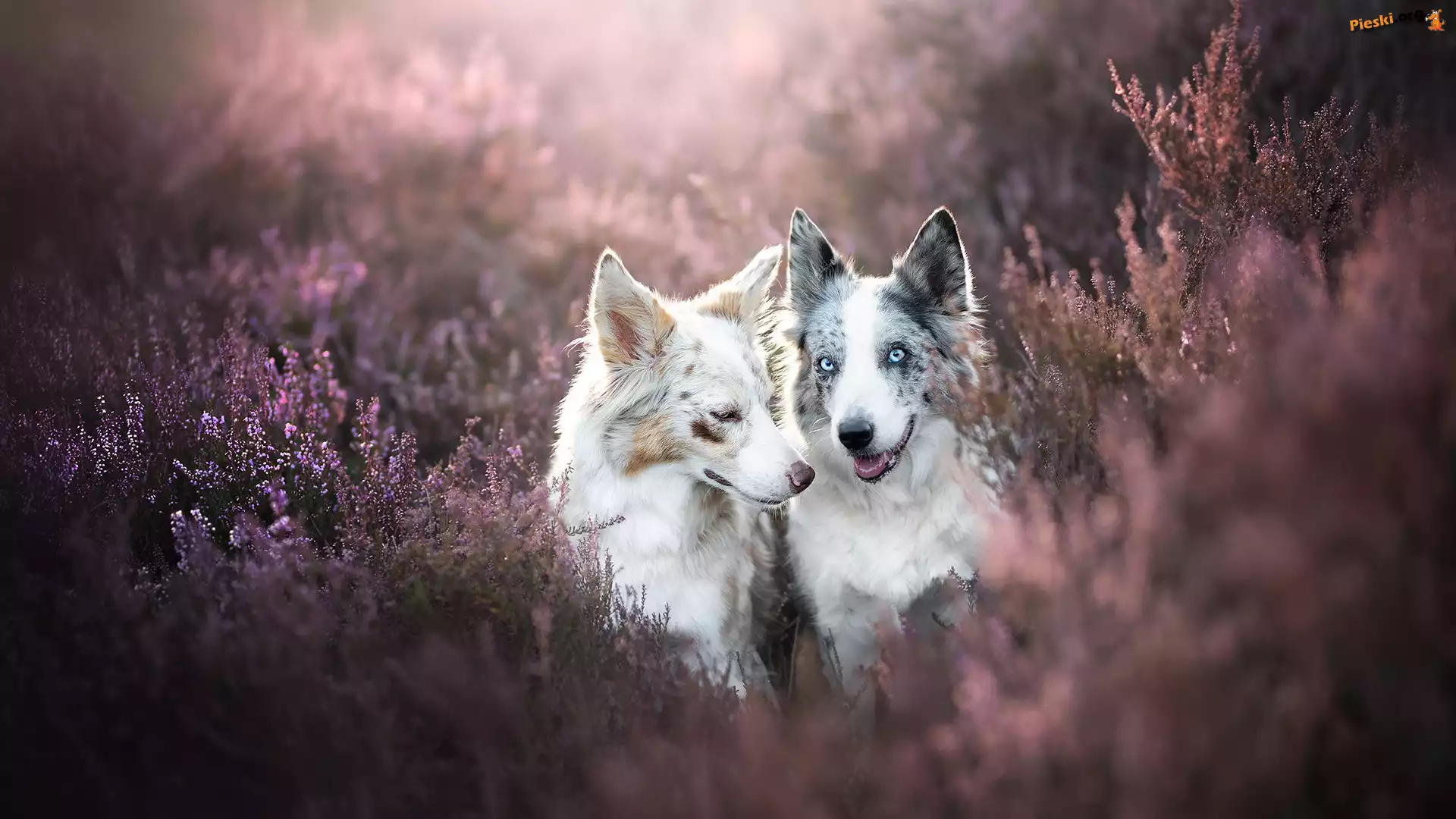 Border collie, Dwa, Psy, Wrzosy, Pieski