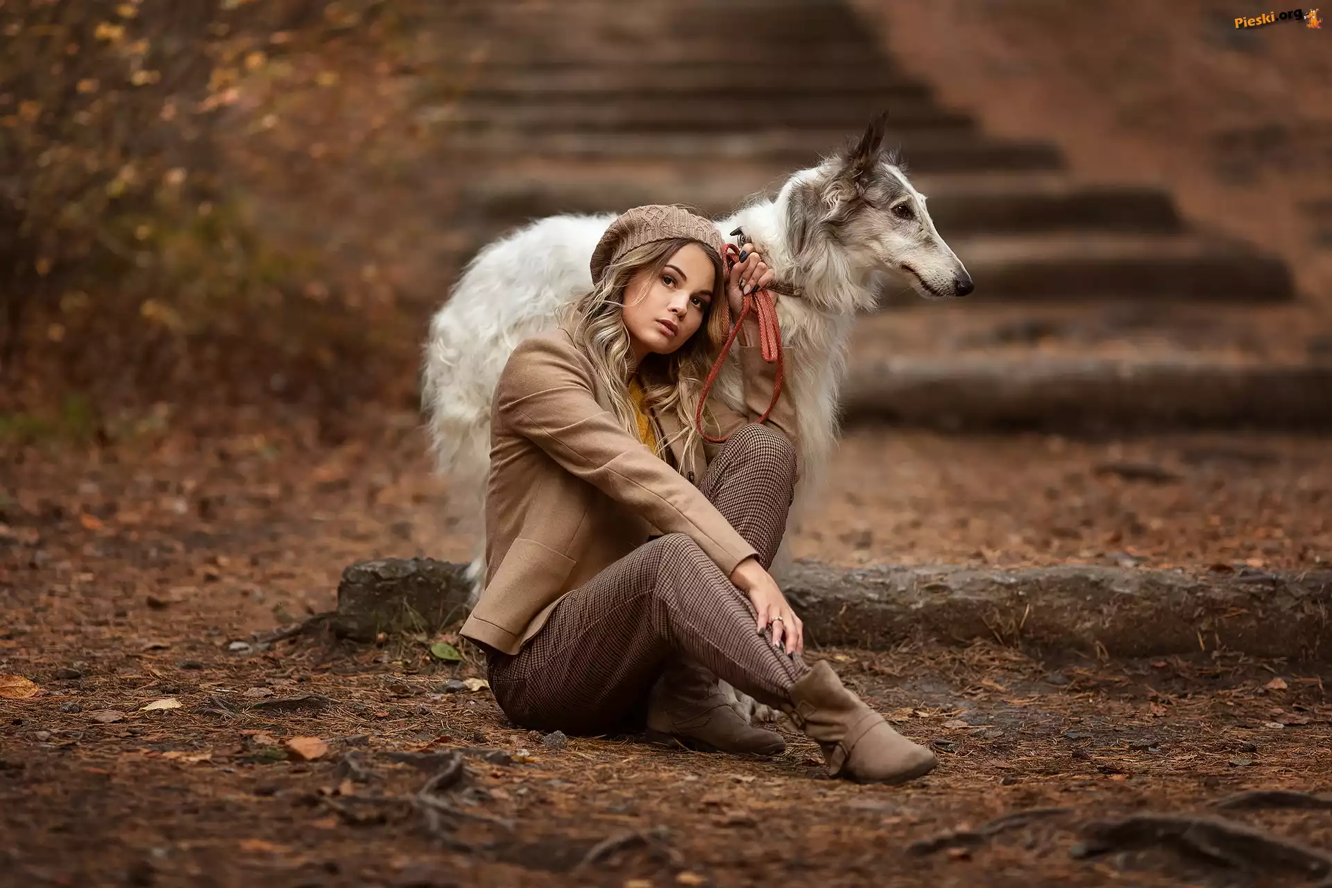 Borzoj, Kobieta, Pies, Chart rosyjski Rosyjski, Pies, Chart, Borzoj Charty, Rosyjskie Psy, Blondynka, Kobieta, Dwa, Charty rosyjskie borzoj Pies, Chart rosyjski, Borzoj
