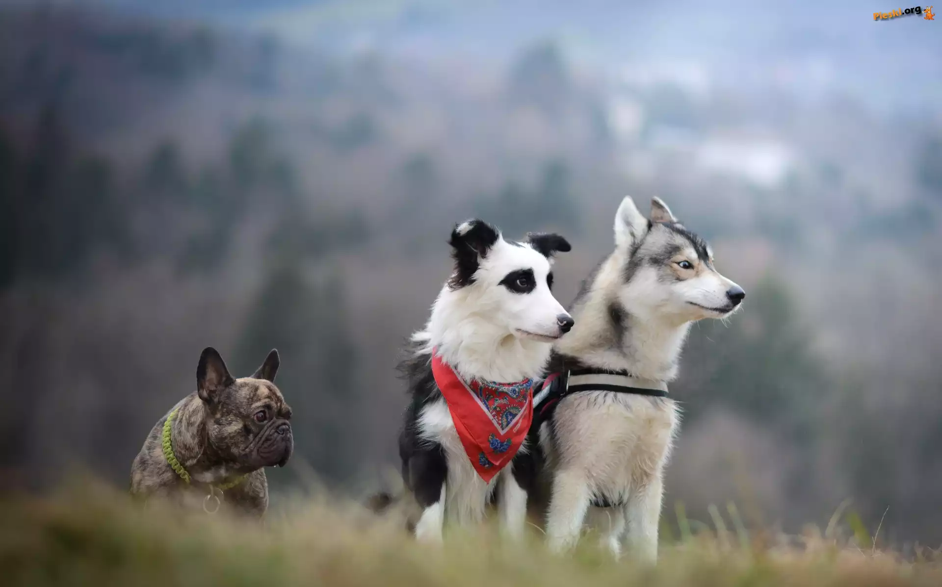 Buldog francuski, Border collie, Siberian husky, Pieski