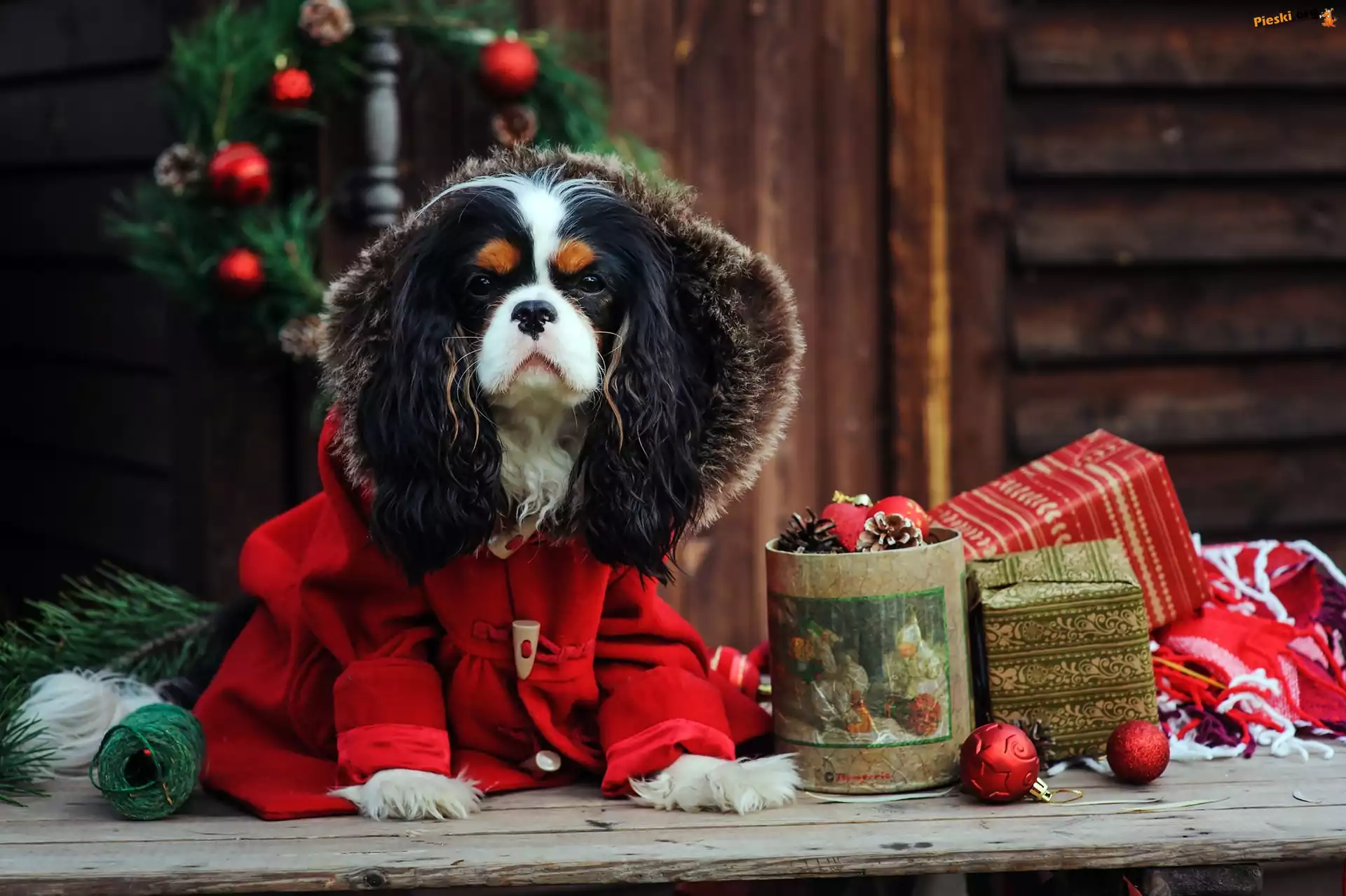 Cavalier King Charles spaniel, Ubranko, Choinka, Pieski
