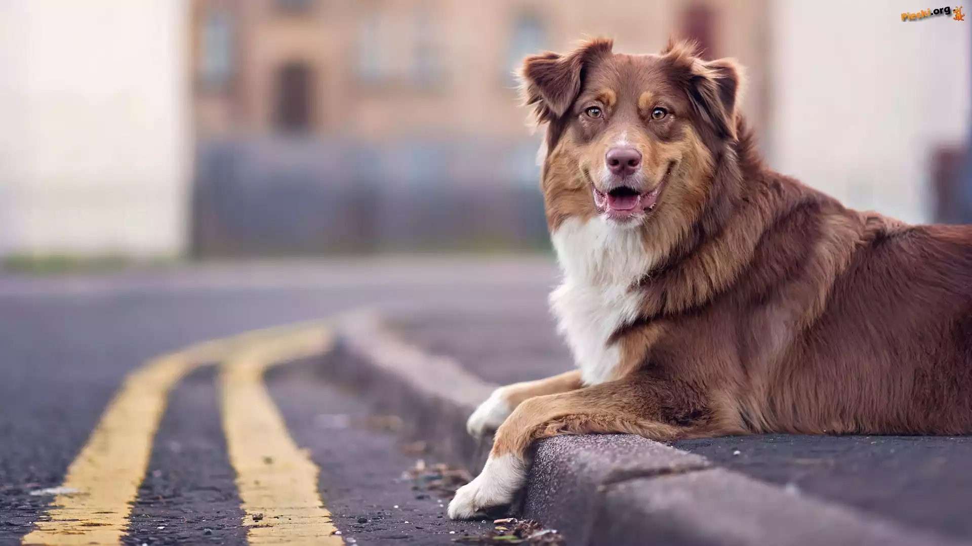 Chodnik, Owczarek australijski, Australian shepherd, Ulica