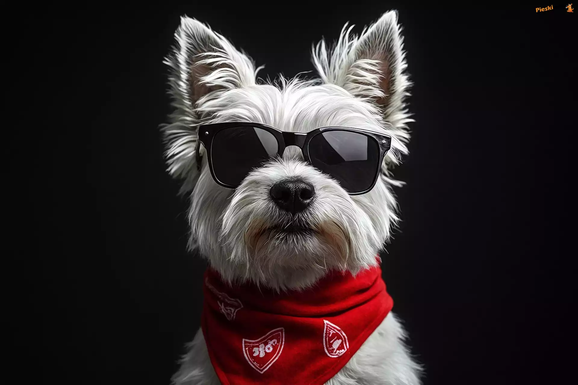 Chustka, Pies, West highland white terrier, Czerwona, Biały, Czarne, Okulary, Pieski