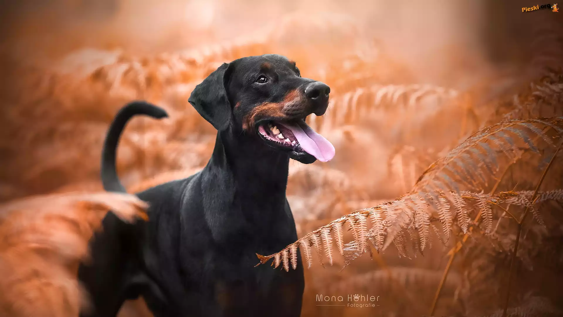 Doberman, Spojrzenie, Obroża Dobermany, Liście, Park, Owczarek Niemiecki, Poranny spacer, Jesień Mały, Duży, Doberman, Pinczer Biegnący, Doberman, Plaża Doberman, Obroża Doberman, Pysk Pokój, Doberman, Pies, Światło Szalik, Pies, Doberman, Kładka
