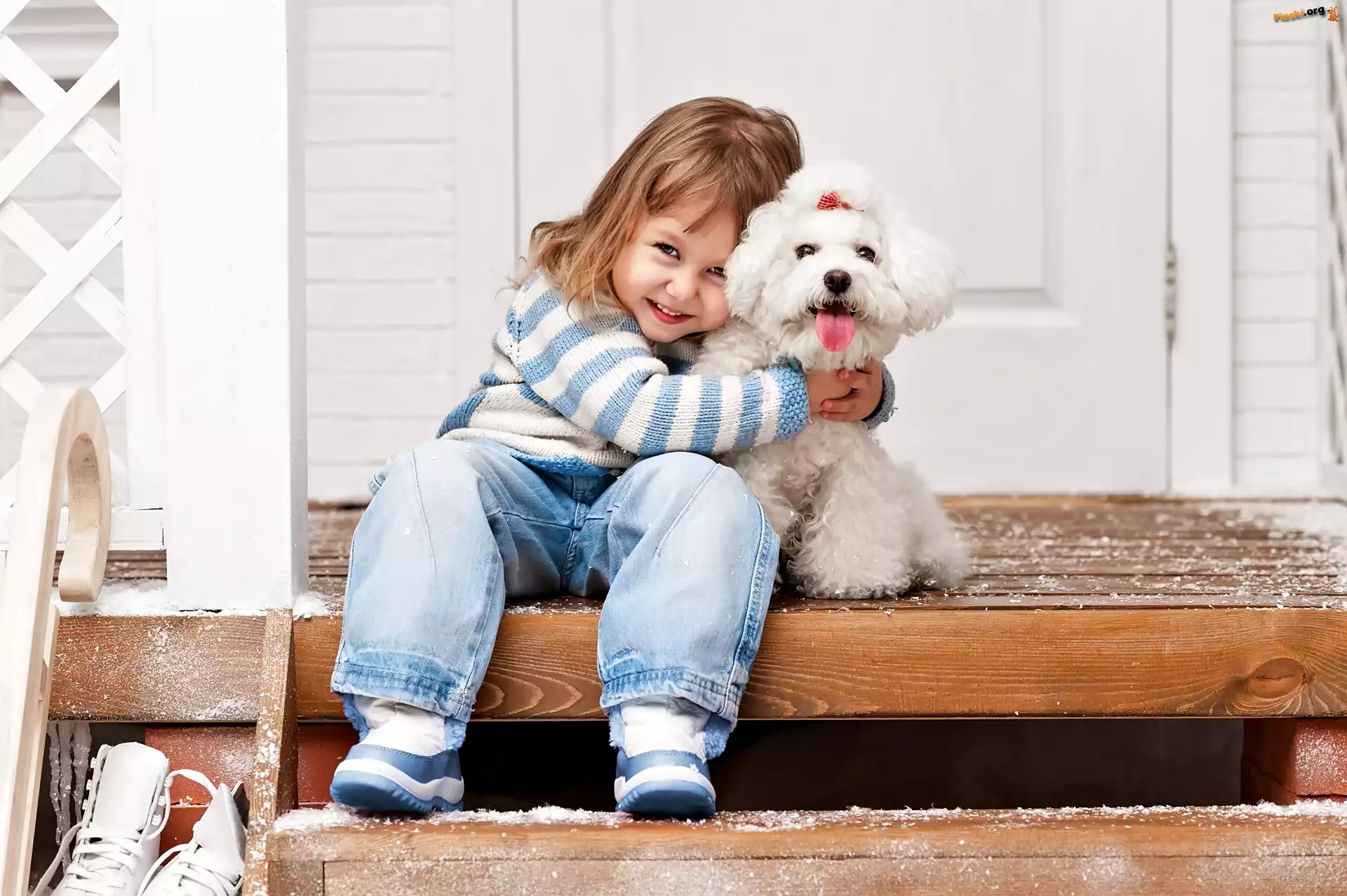 Dziewczynka, Uśmiechnięta, Radosna, Pudel miniaturowy Border collie, Trawnik, Psy, Pudel miniaturowy Dziewczynka, Sanki, Pudel miniaturowy Pies, Róża, Pudel miniaturowy Obroża, Biały, Pudel, Sofa Płot, Pies, Pudelek miniaturowy, Kwiaty Żółte, Biały, Pudelek, Kwiaty Dziewczynka, Pudel miniaturowy, Schody