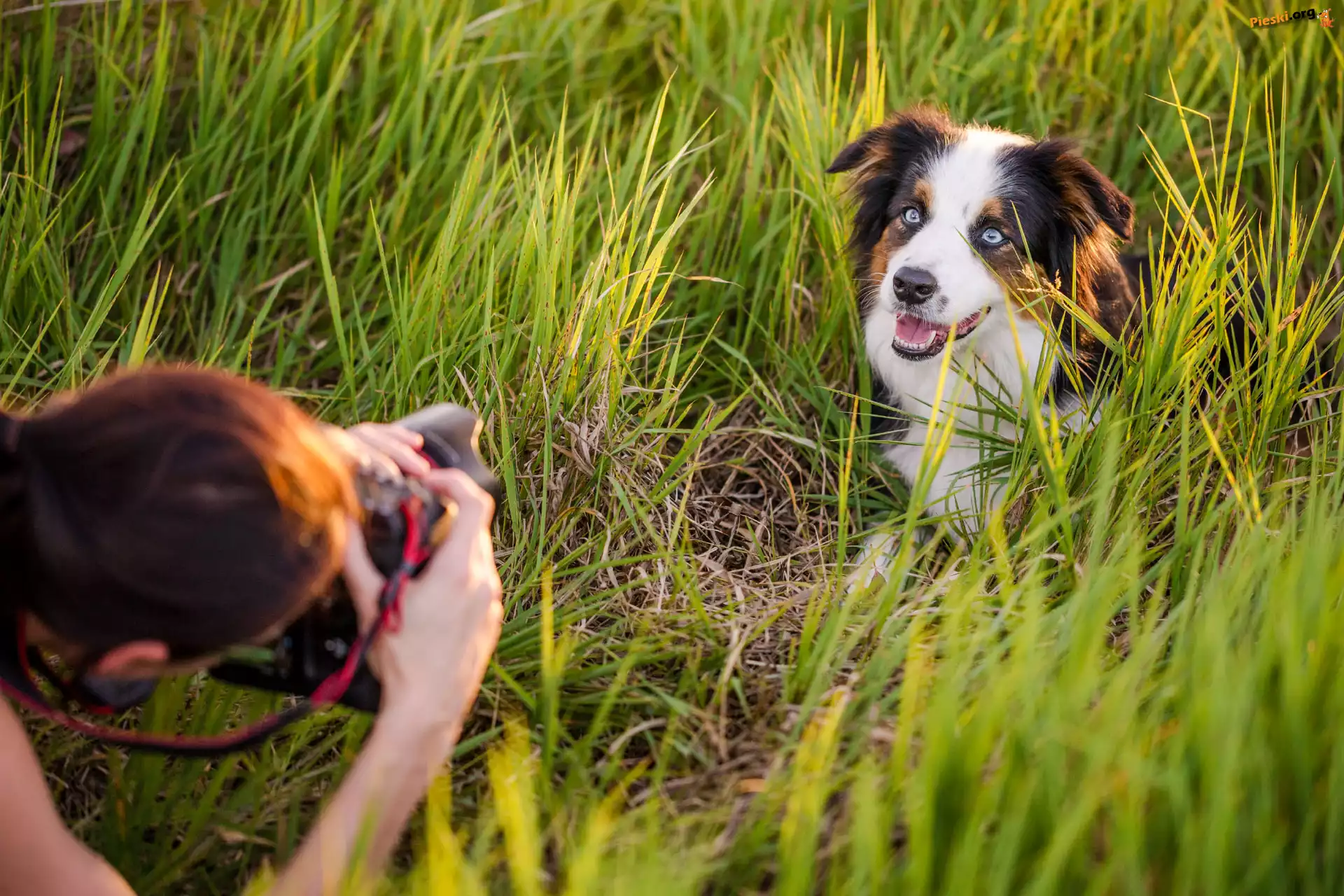 Fotograf, Pies, Trawa, Aparat, Pieski