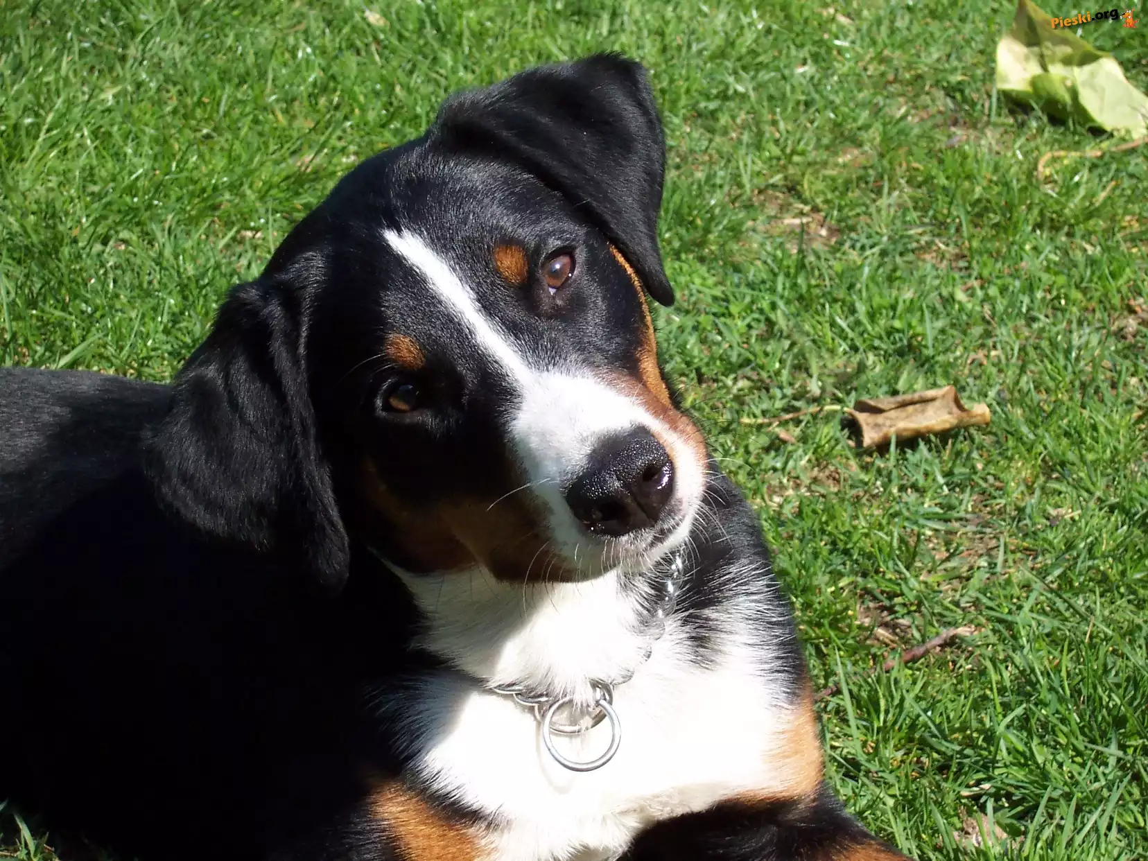 Pies, Trawa, Łąka głowa, język, Appenzeller Szczeniak, Pies, Appenzeller, Trawa głowa, Appenzeller