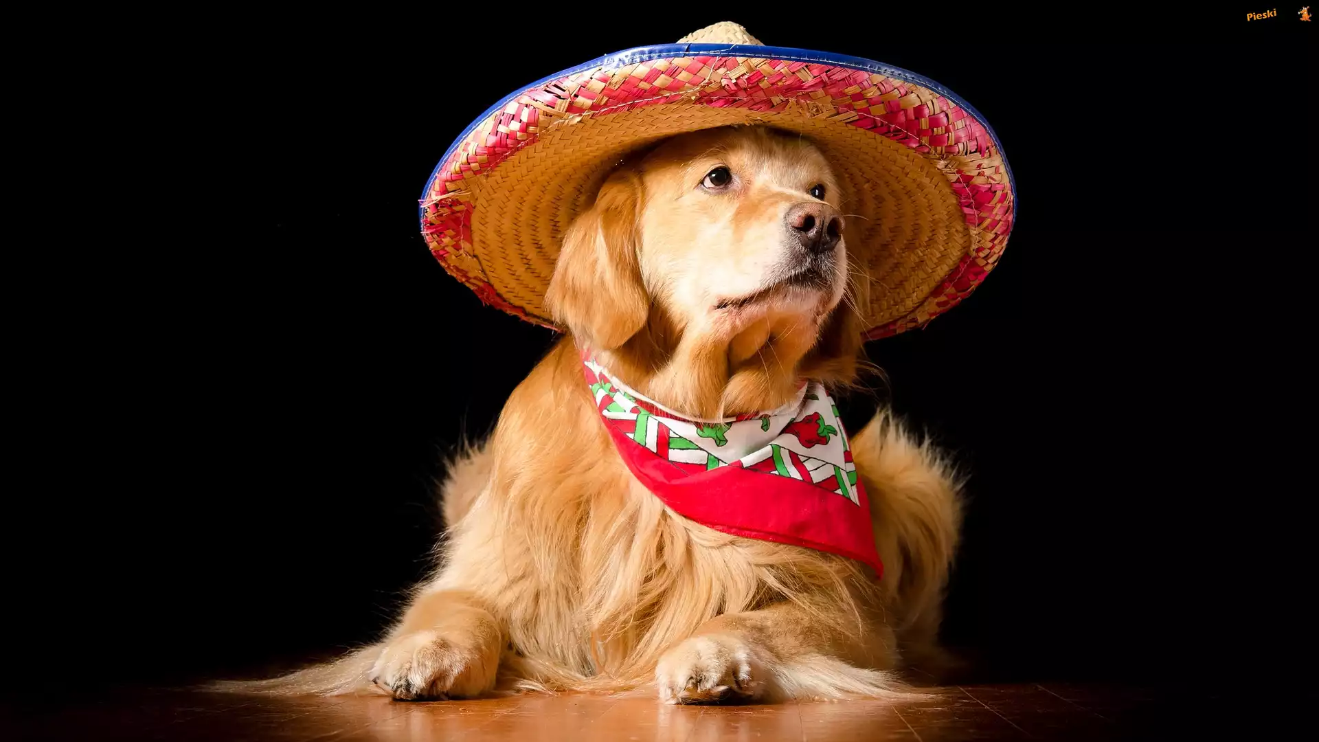 Apaszka, Golden retriever, Pies, Kapelusz, Ciemne tło