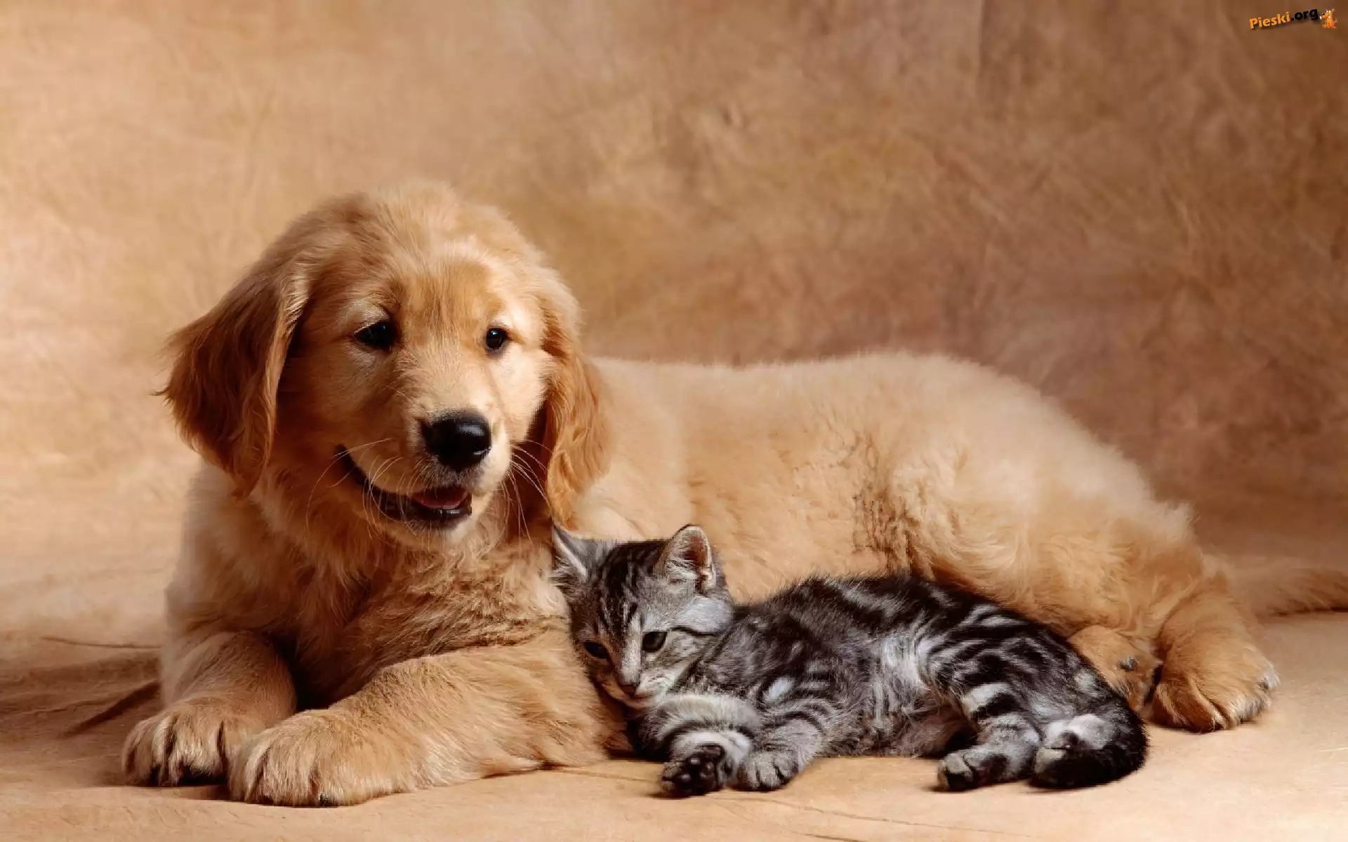 Golden Retriever, Mały, Szczeniak, Kotek