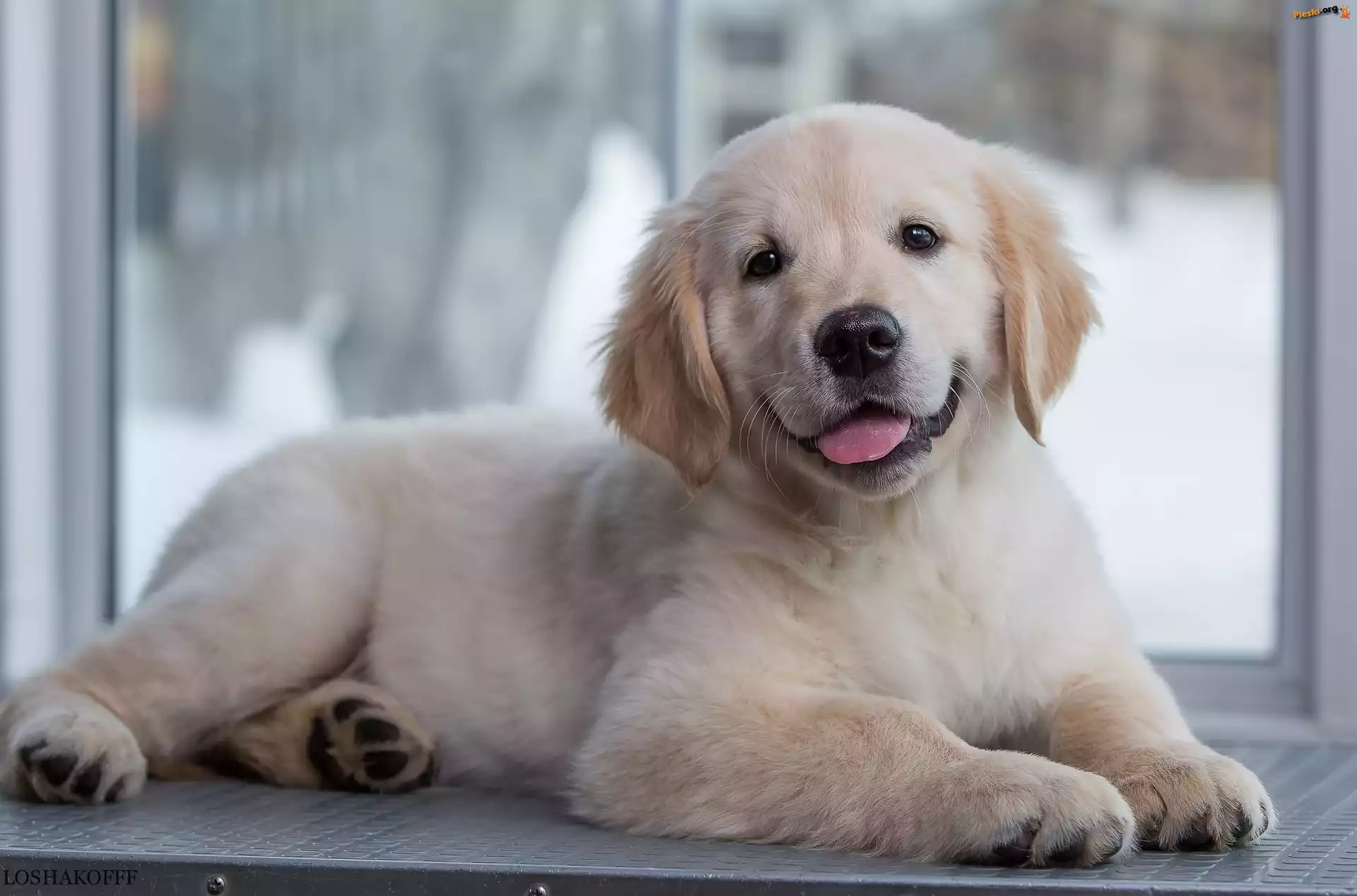 Golden retriever, Słodki, Szczeniak, Okno