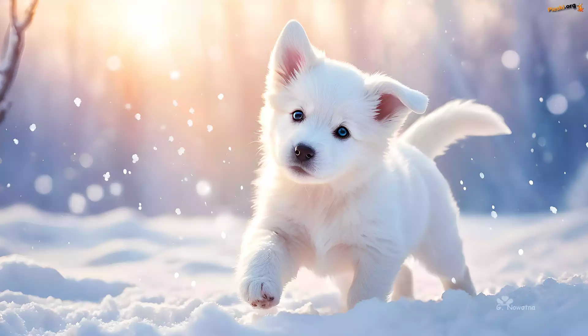 Pies, Grafika, Biały, Śnieg, Szczeniak, Pieski