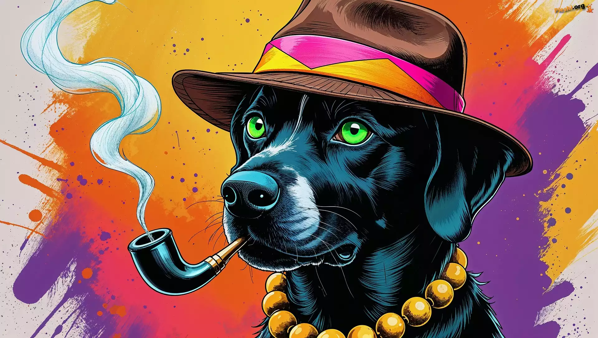 Korale, Grafika, Pies, Fajka, Kapelusz
