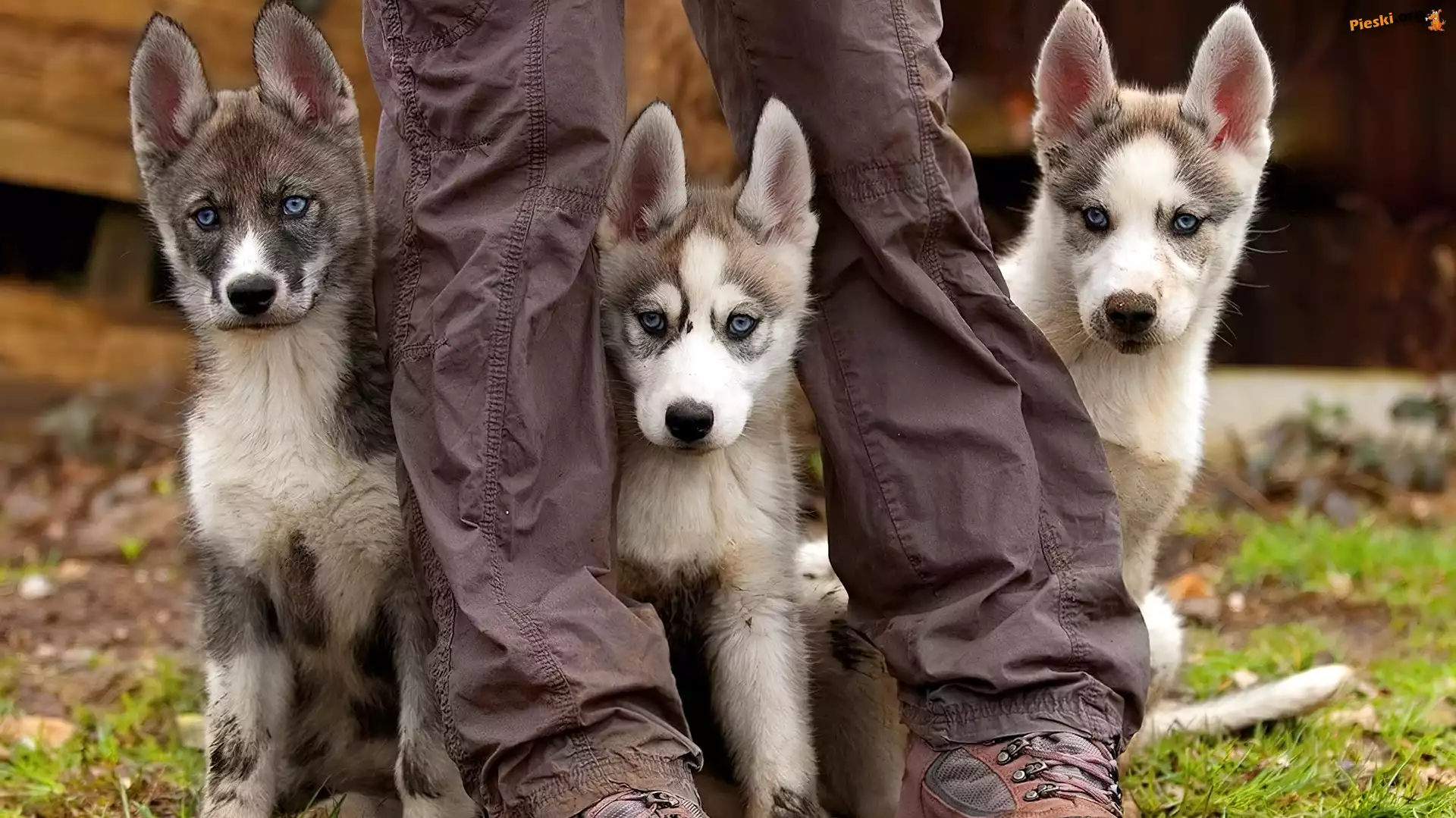Nogi, Husky, Szczeniaki, Trzy, Pieski