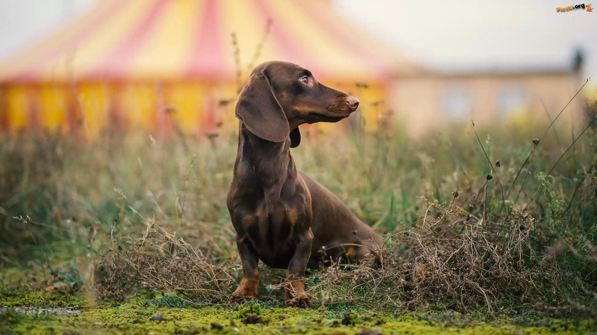 Jamnik krótkowłosy, Pies, Brązowy, Trawa, Pieski