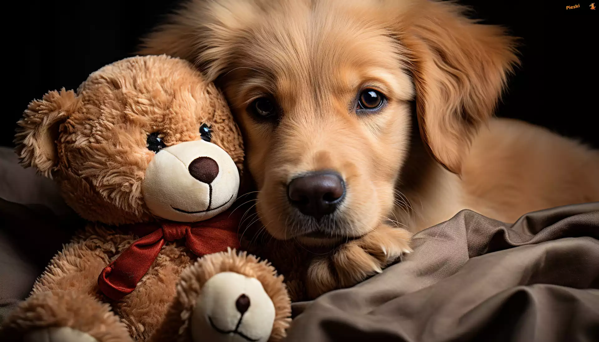 Pluszowy, Kokarda, Pies, Miś, Szczeniak, Pieski