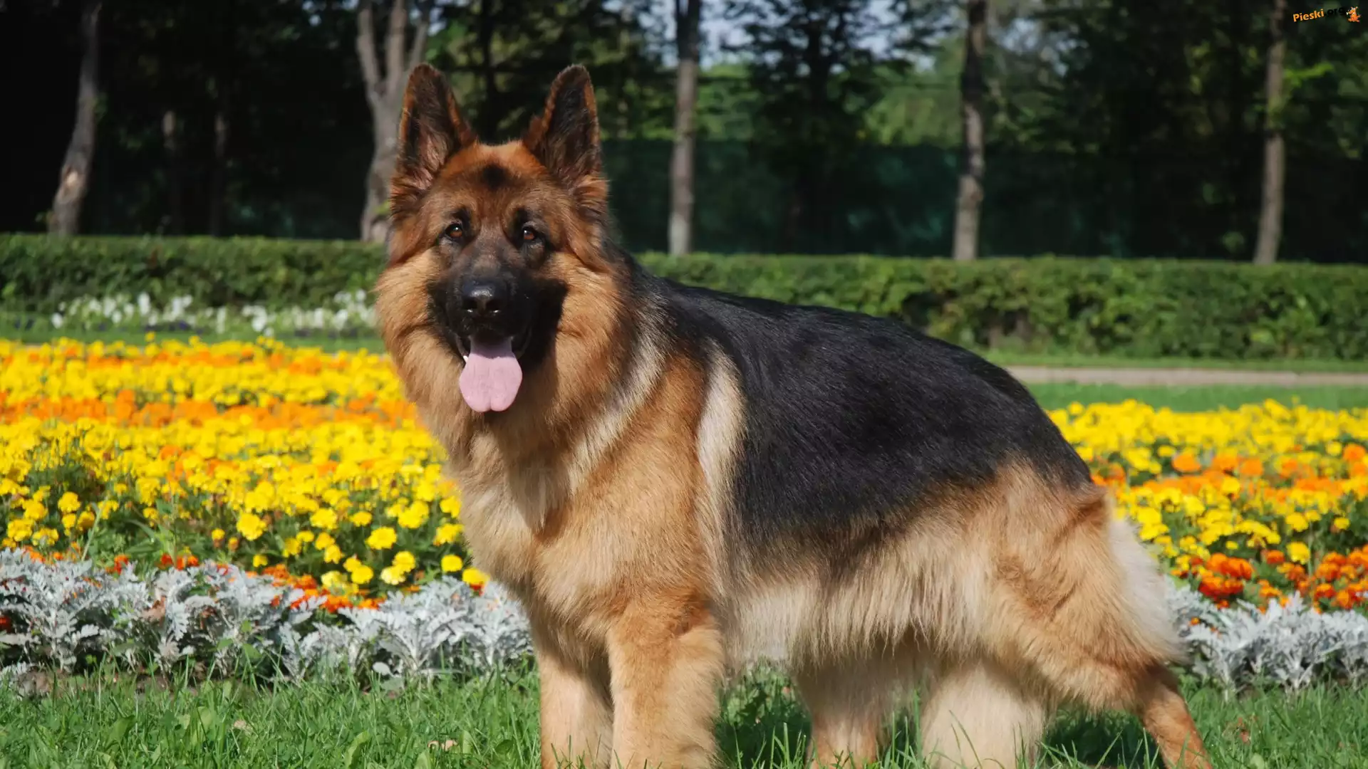 Kwiaty, Owczarek, Niemiecki, Drzewa