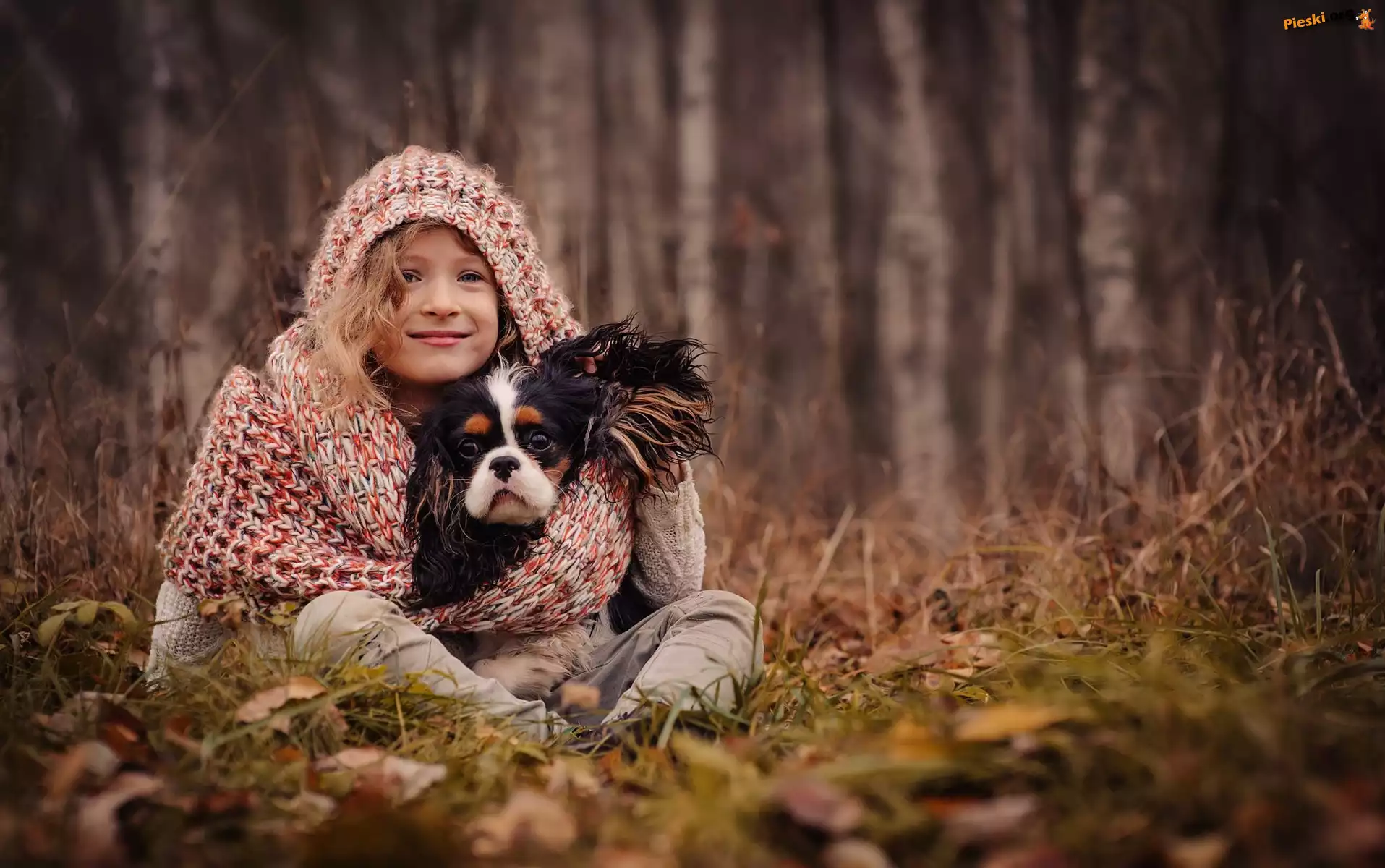 Las, Dziewczynka, Cavalier king charles spaniel, Pieski