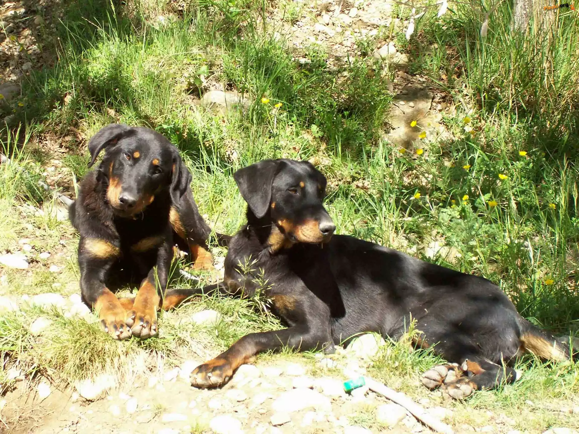 trawa, soczysta, Beauceron Dwa, leżące, Beaucerony Beauceron, obroża, łańcuch Dwa, Owczarki francuskie Beauceron Pies, Trawa, Ludzie Młody, Owczarek francuski Beauceron Owczarek francuski Beauceron, jęzor, kij Beauceron, łapy przewrócone, Trzy, Beaucerony, drzewo Słodki, szczeniak, Beauceron tylna, pazur, podwójny, Beaucerona, łapa Pies, Szczeniak, Owczarek francuski Beauceron Głowa, Owczarka francuskiego Beaucerona Owczarek francuski Beauceron, kamienie