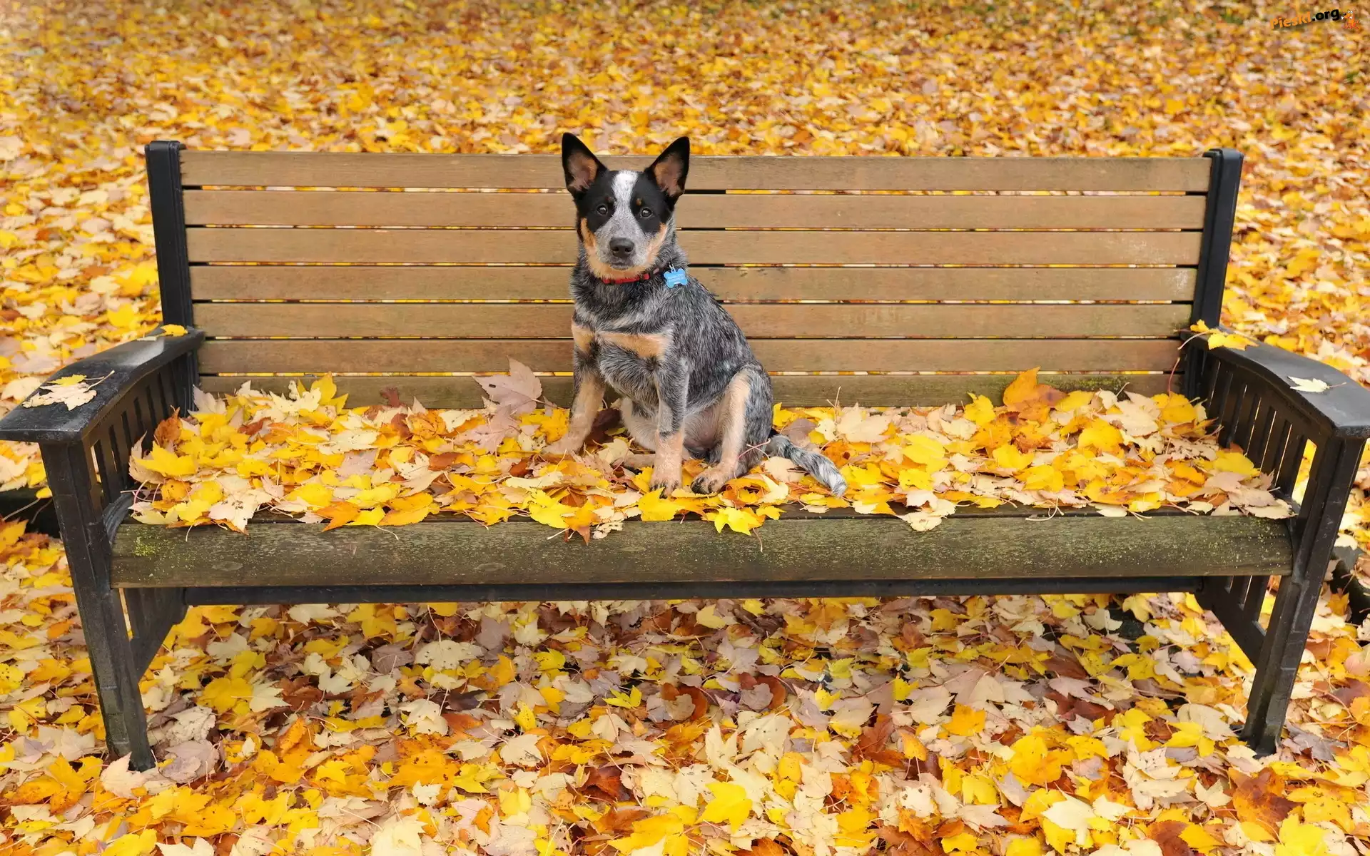 Ławka, Liście Australian cattle dog, Pieski