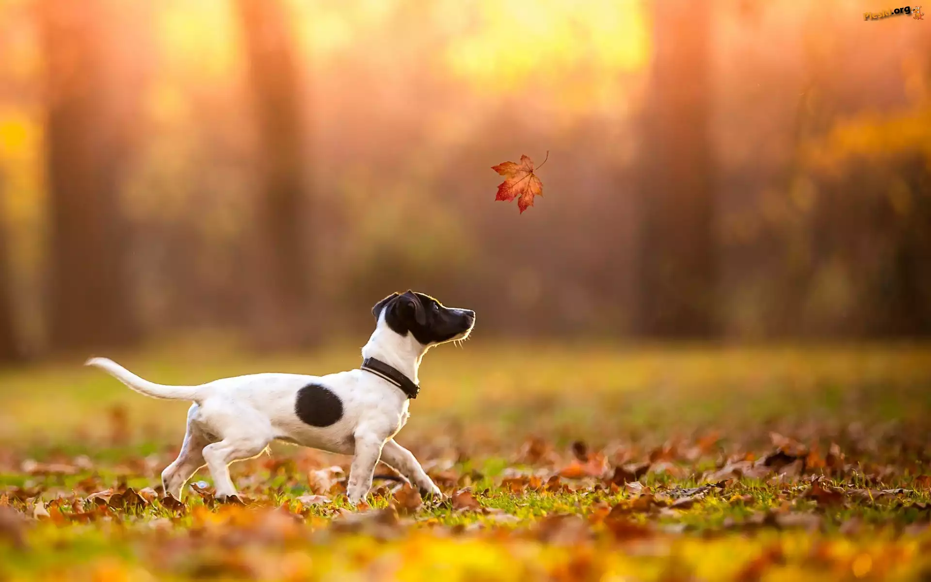 Pies, Liście, Jesień, Liść, Jack Russell terrier