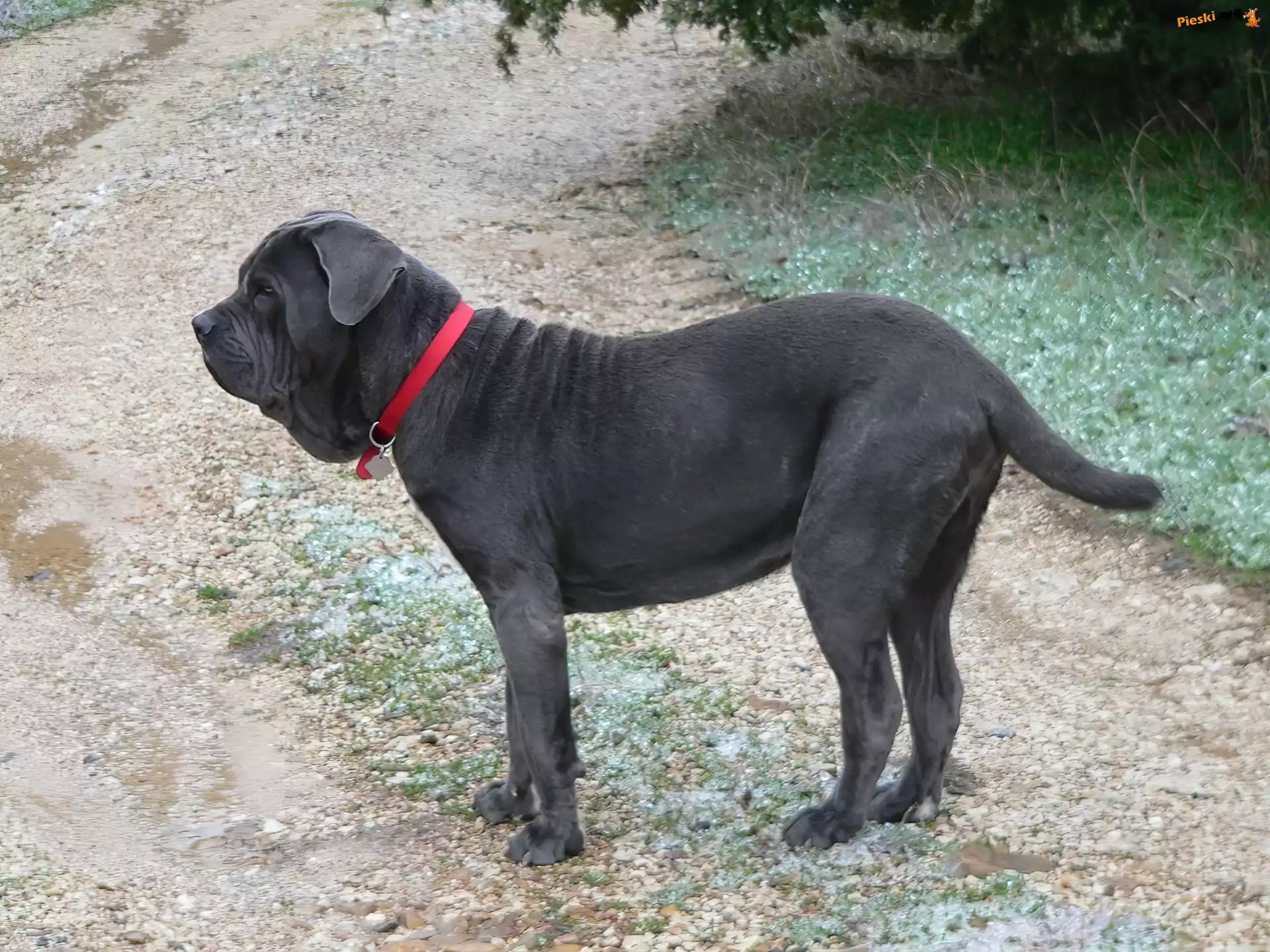 Mastif neapolitański, czerwona, obroża