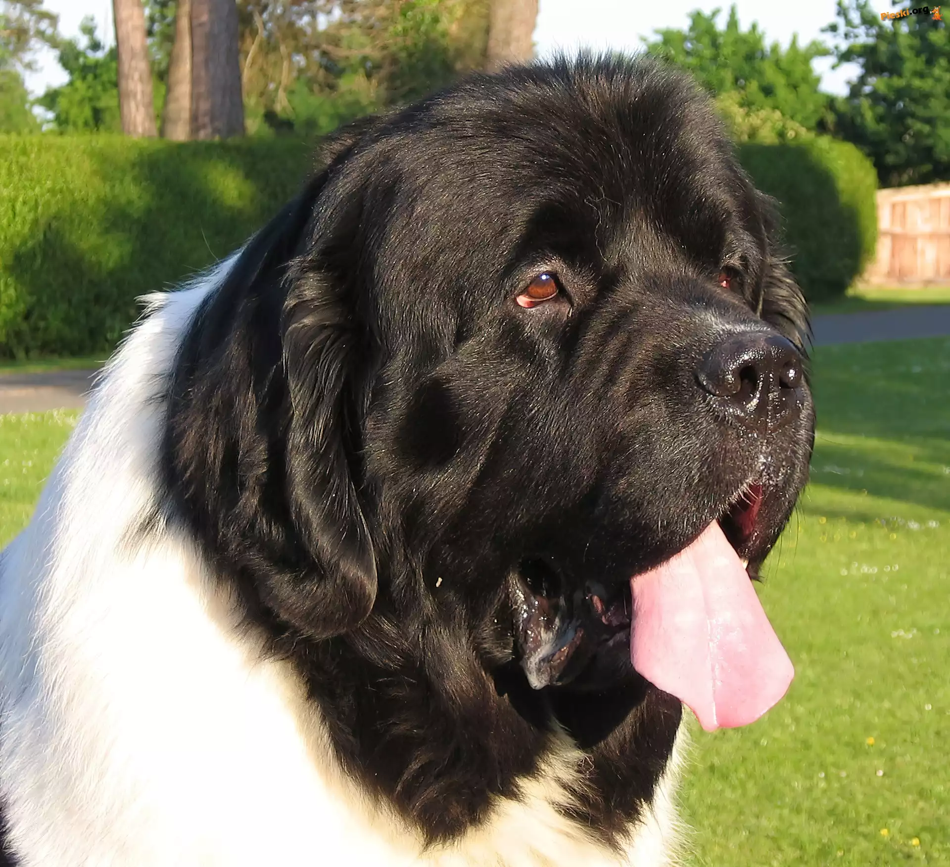 mordka, Landseera Piesek, Łąka morda, Landseera trawa, zielona, Landseer Kot, Pies, Słodkie biało-czarny, Landseer Morda, Landseera pysk, Landseera słodkie, szczeniaki, Landseery trzy, Landseery biegnący, Landseer kratka, chustki, Landseer