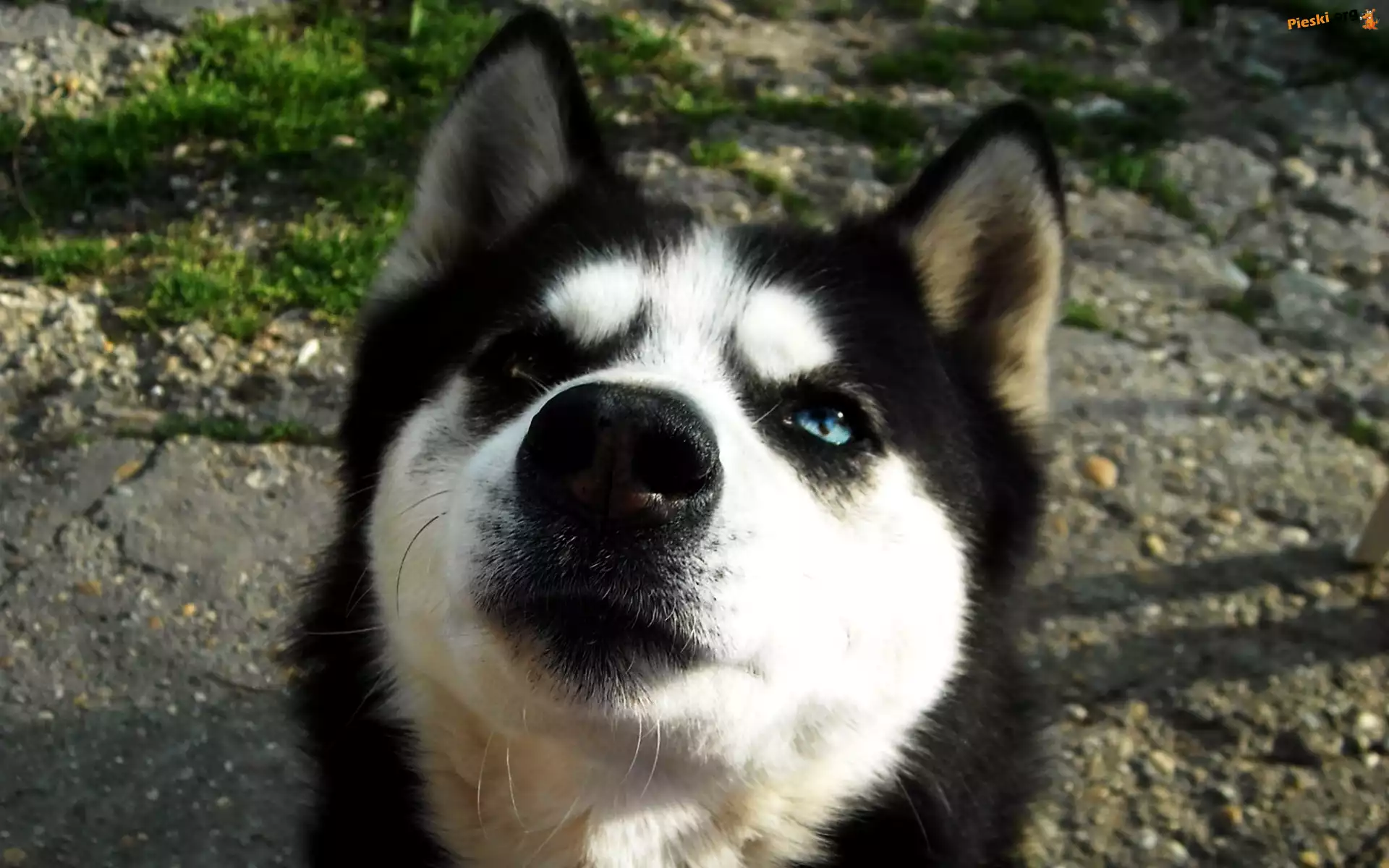Siberian Husky, Niebieskie, Oczy Niebieskie, Siberian Husky, Szczeniak, Oczy Siberian Husky, Szczeniaki Biały, Siberian, Husky Liście, Biały, Pies Dwa, Siberian Husky Oczy, Kolorowe, Syberian Haski Las, Psi, Zaprzęg, Zima Siberian Husky, Liście Siberian, Husky Pies, Husky, Jesień Siberian Husky, Roślinność Łapka, Śpiący, Szczeniaczek, Siberian Husky Husky, Słońca, Promienie, Jezioro, Góry, Chmury
