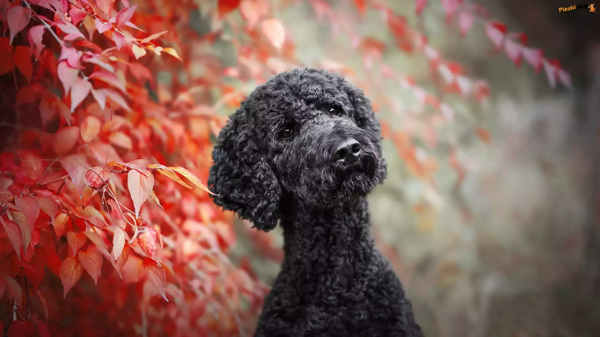 Mordka, Czarny, Pies, Pudel, Liście, Pieski