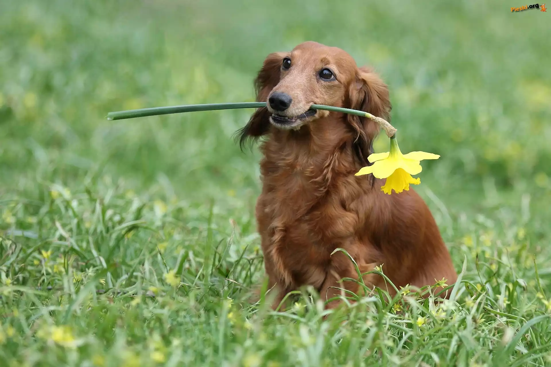 Żonkil, Pies, Laka, Jamnik Długowłosy, Pieski
