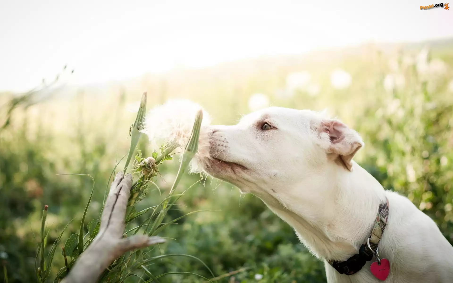 Obroża, Biały, Pies, Dmuchawiec