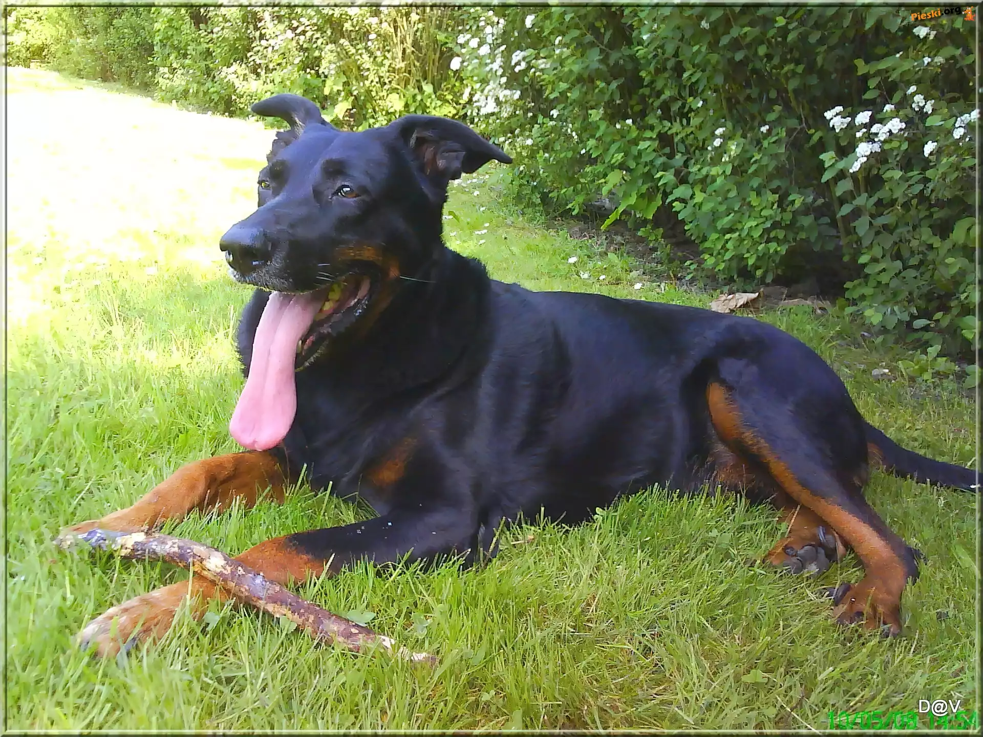 Owczarek francuski Beauceron, jęzor, kij, Pieski