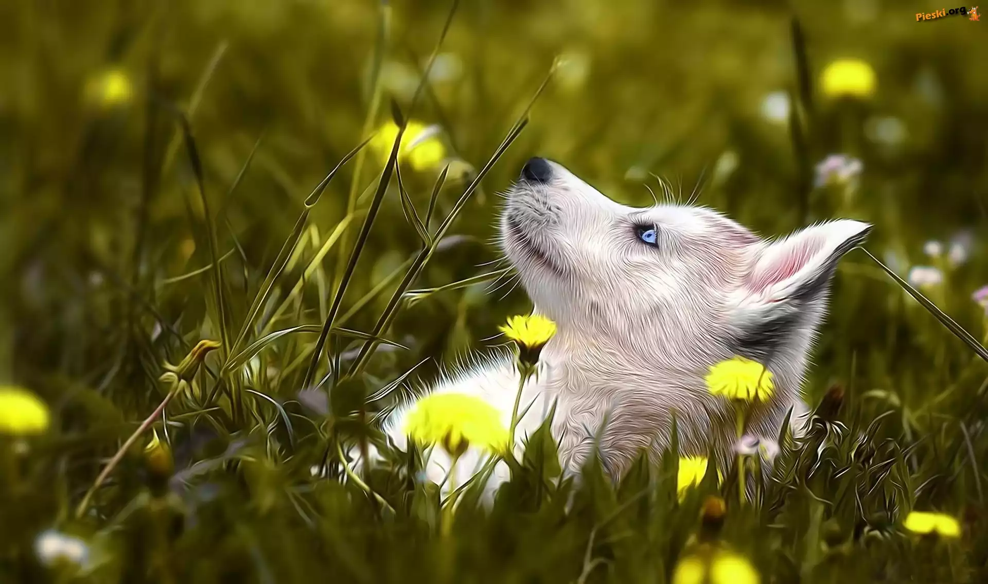 Łąka, Biały, Pies, Art, Pieski