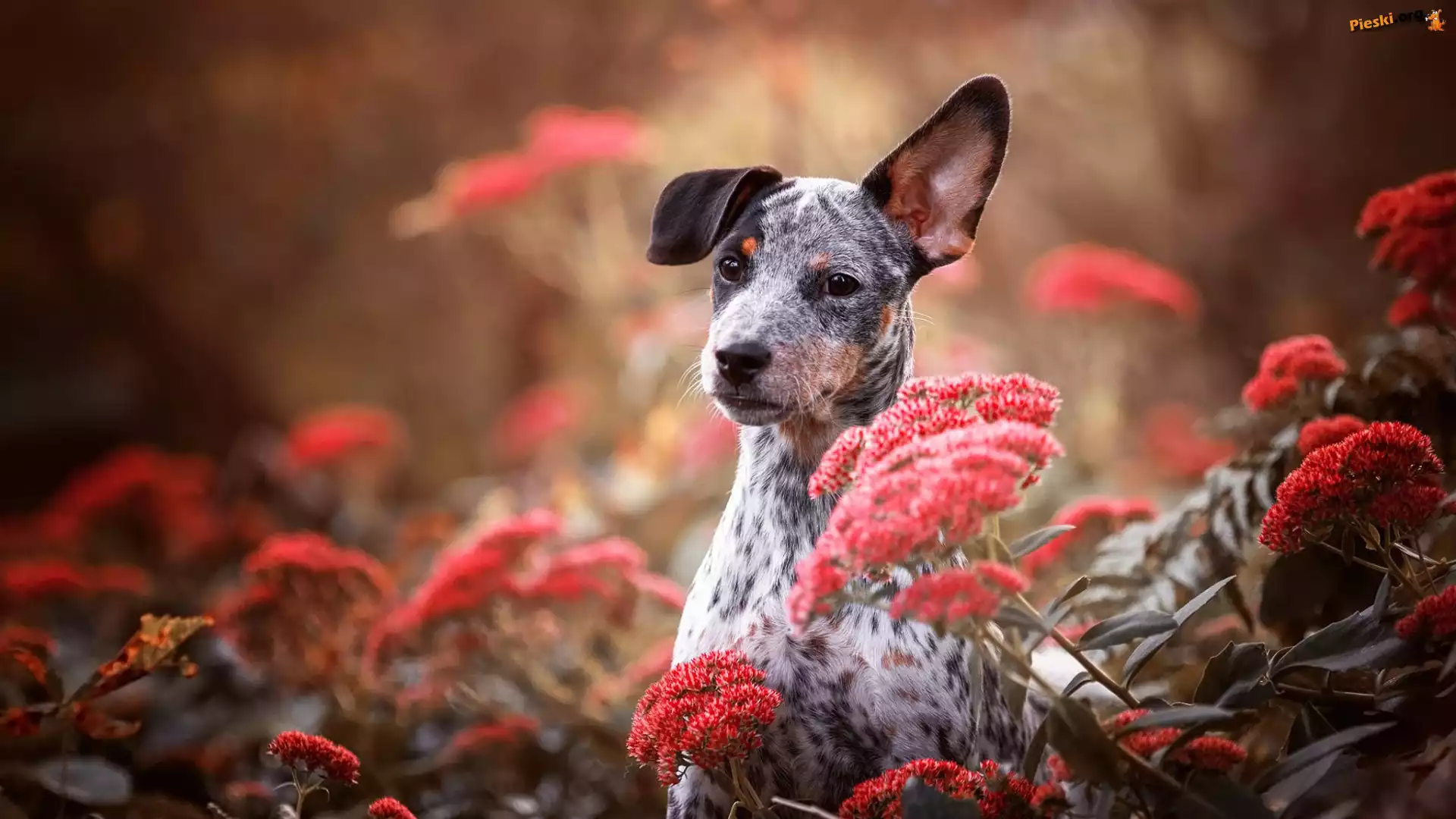 Pies, Czerwone, Kwiaty, Szczeniak, Pieski