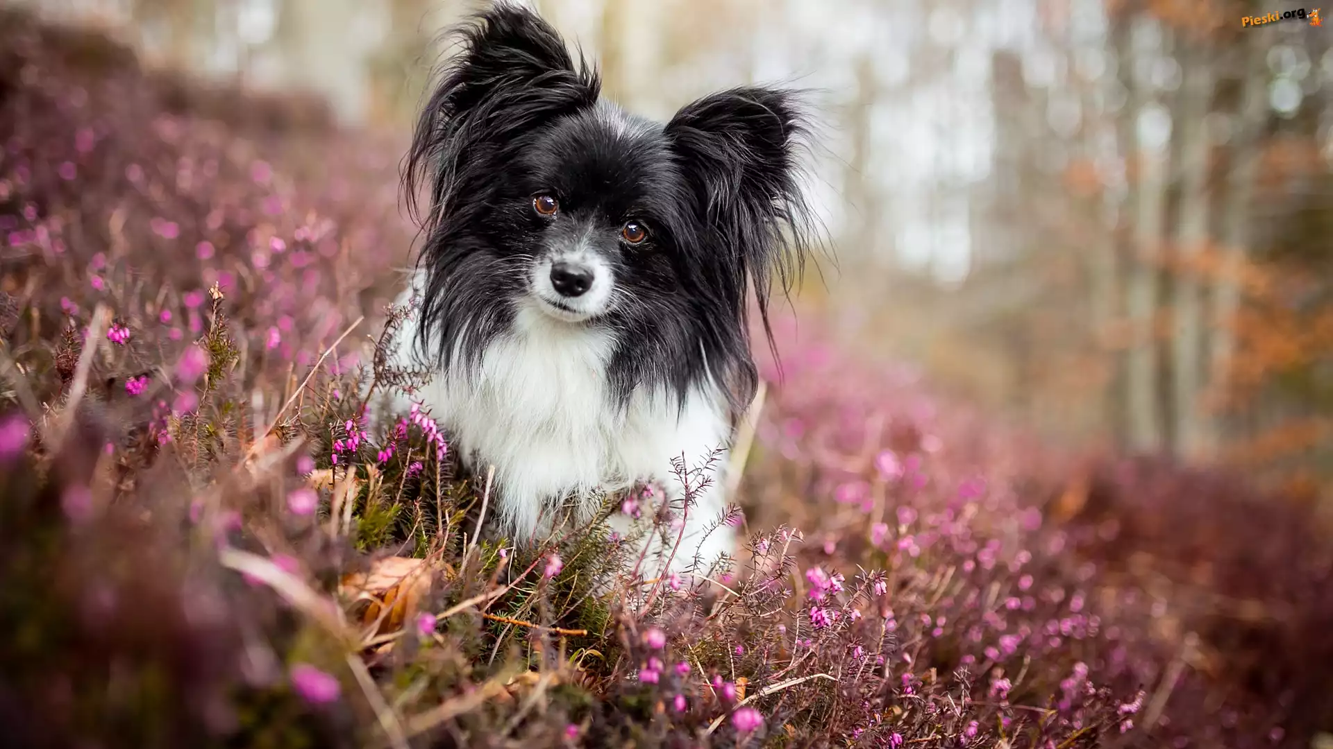 Mordka, Pies, Spaniel kontynentalny miniaturowy Papillon, Wrzosy