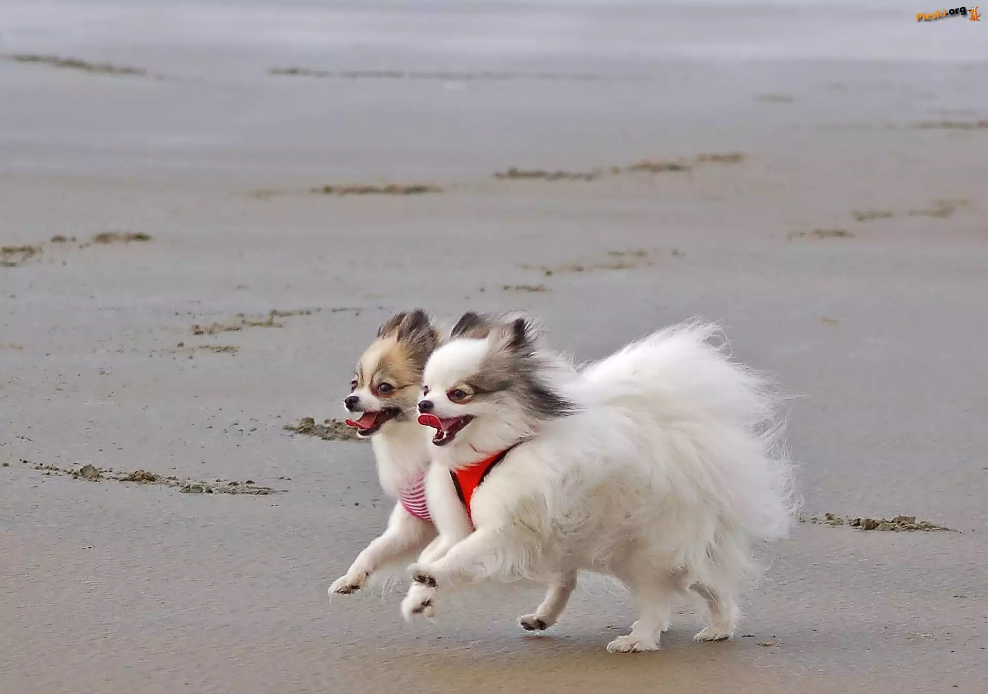 Pieski, Szpic Miniaturowy, Plaża, Pieski