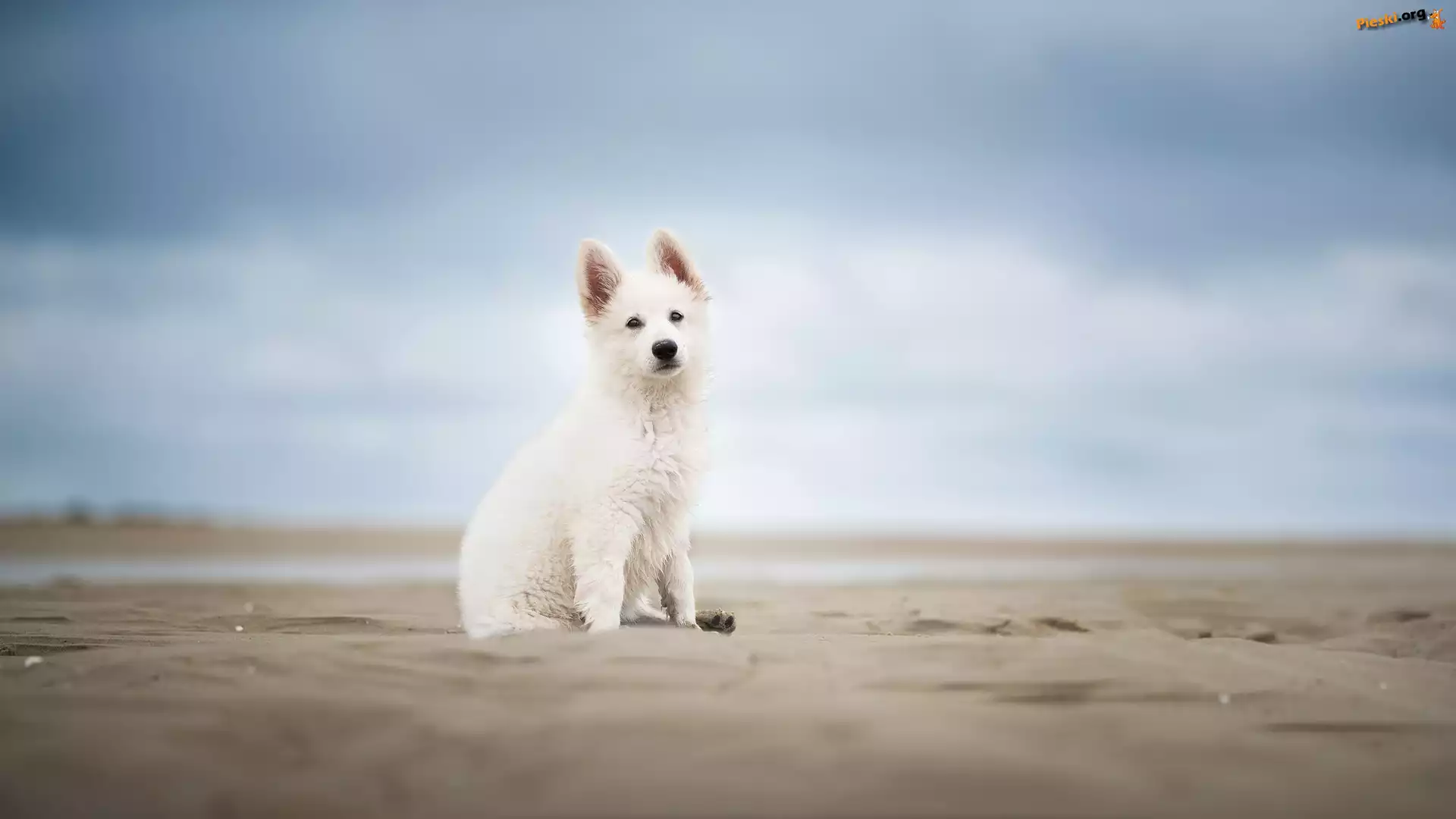 Plaża, Szczeniak, Biały owczarek szwajcarski