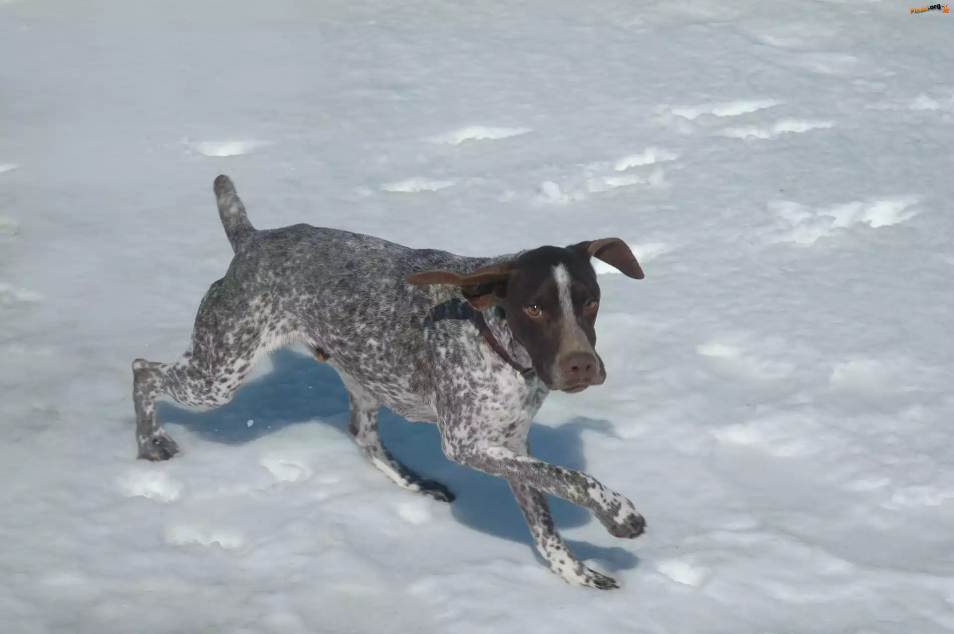 Pointer, śnieg Trawa, Pointer, Łatka, Kwiaty Pointer, czarne, kropki Ładny, Pies, Myśliwski Pies, Orzeł, Przyjaciele morda, Pointera
