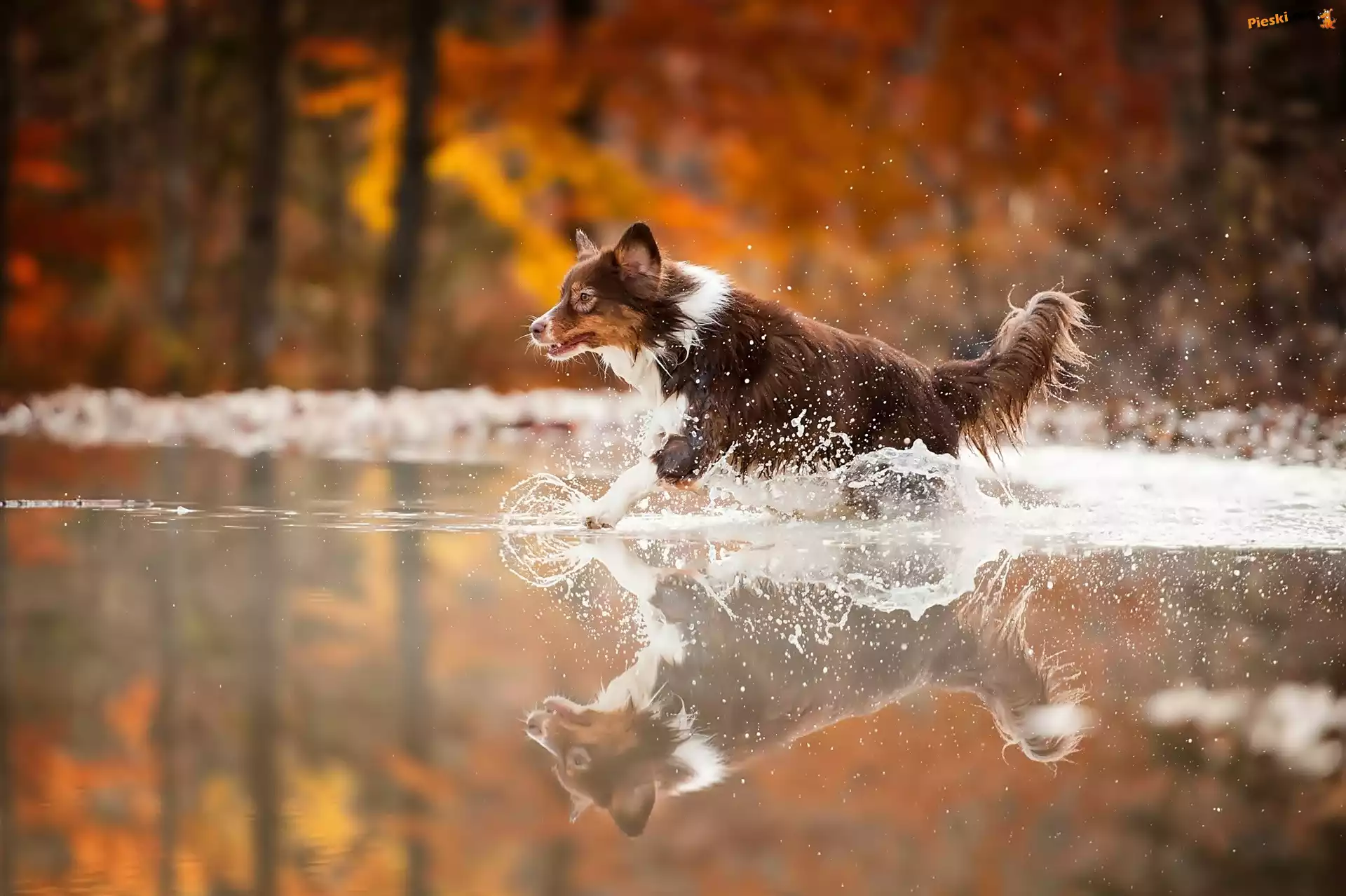 Rozbryzg, Pies, Biegnący, Woda, Odbicie, Pieski