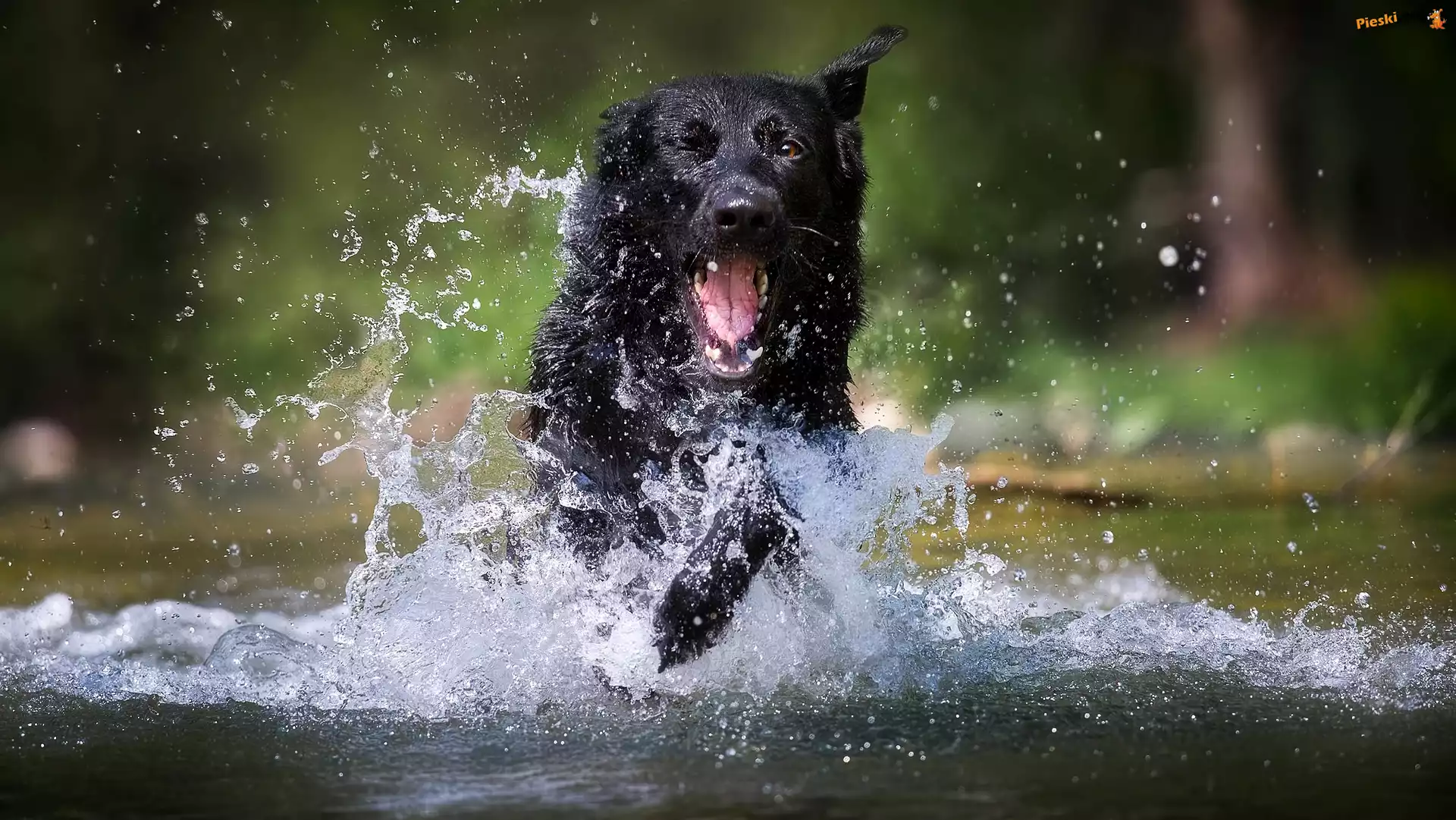 Rozbryzgująca, Czarny owczarek niemiecki, Pies, Woda