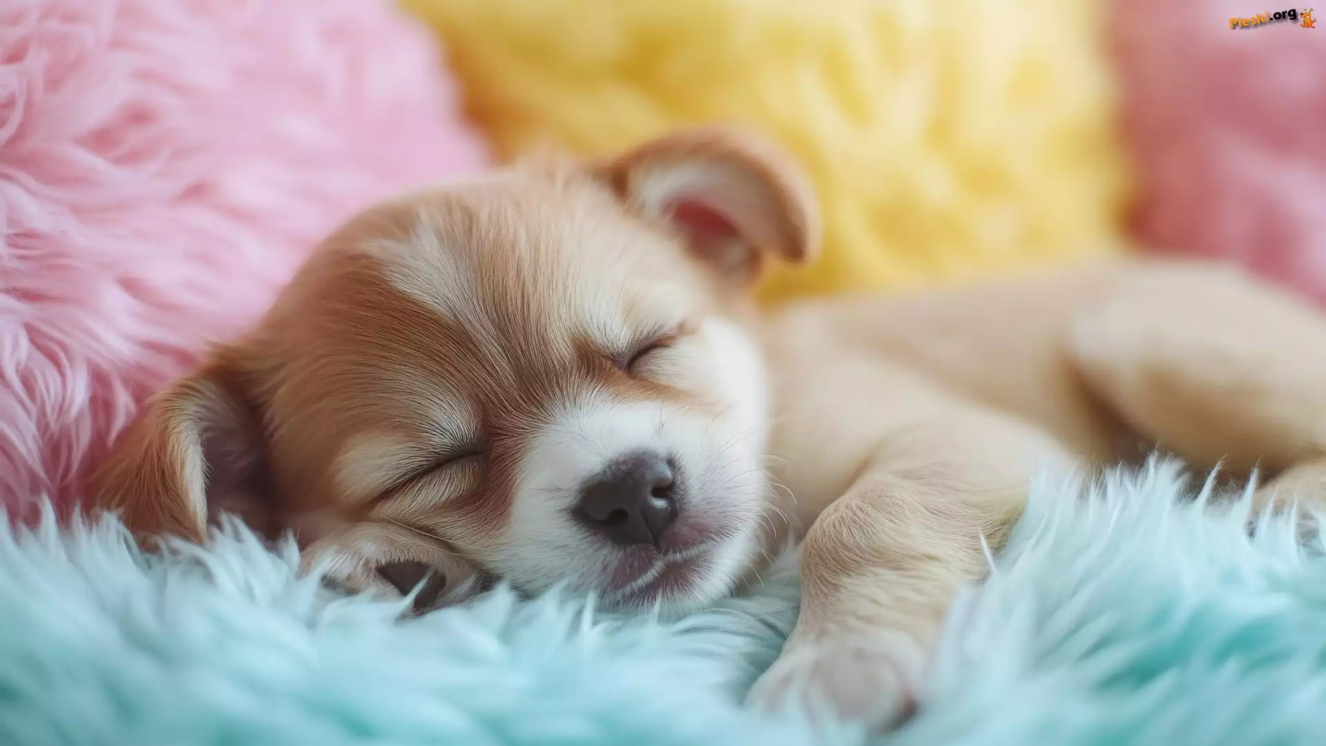 Szczeniak, Posłanie, Pies, Różowo-niebieskie, Śpiący