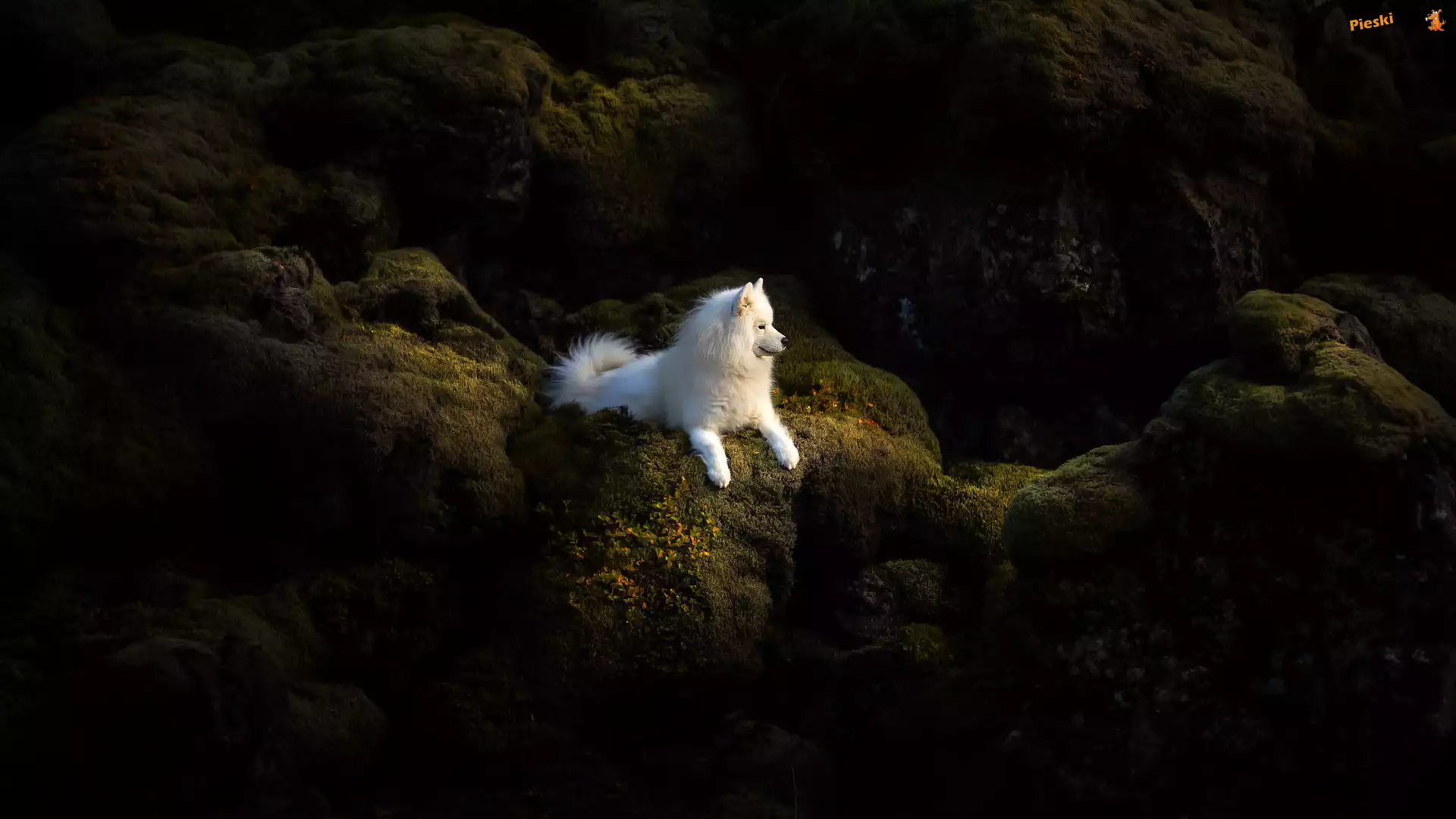 Samojed, Biały, Pies, Skały, Pieski