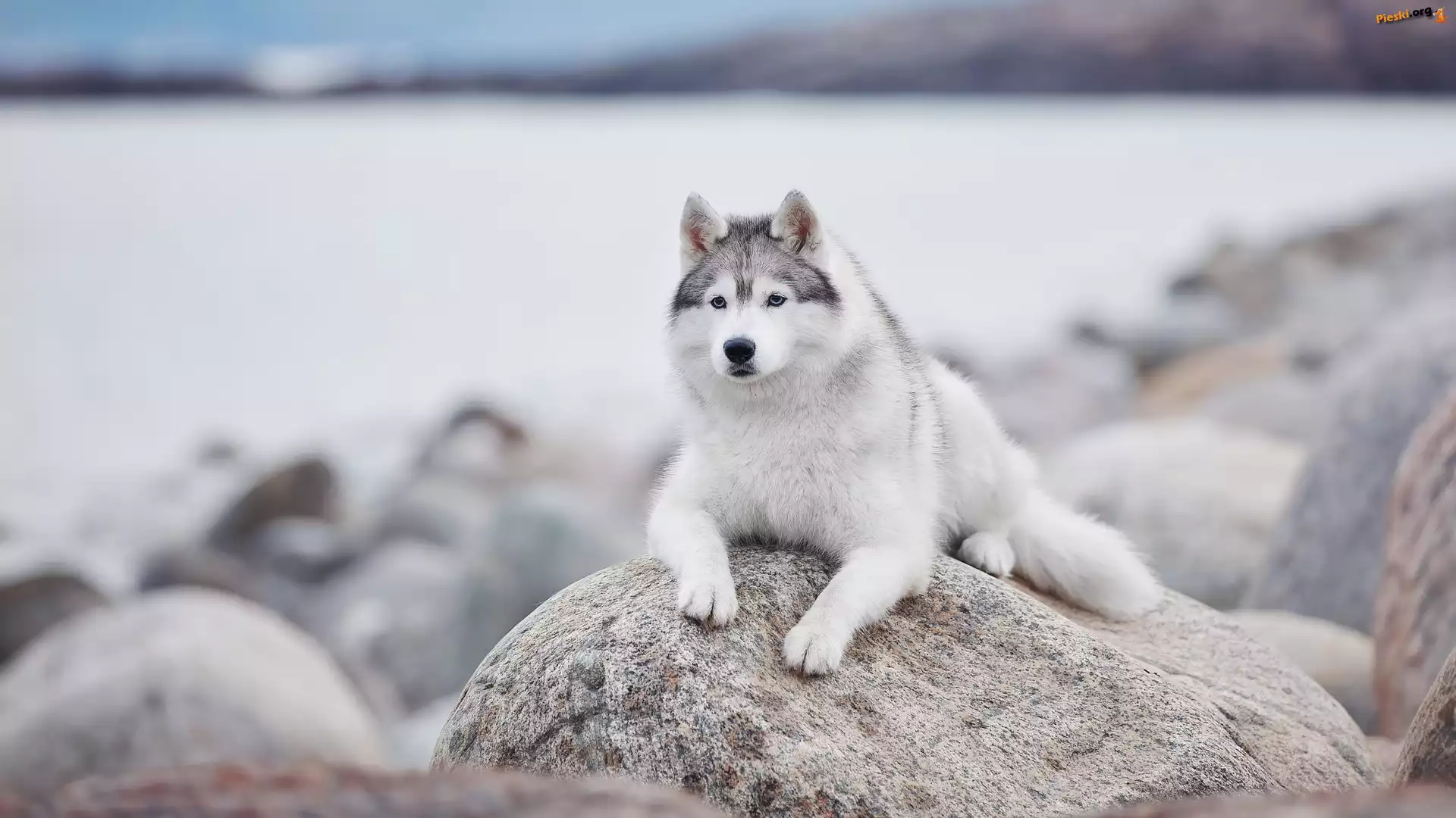 Siberian husky, Pies, Leżący, Kamień, Pieski