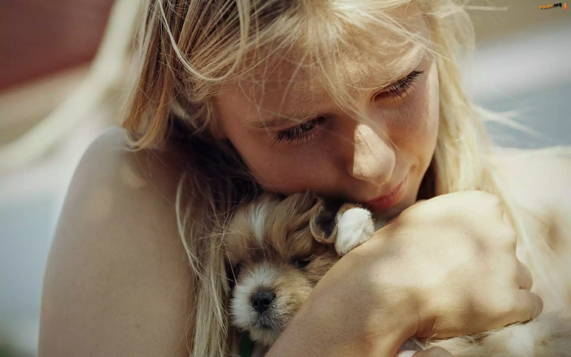 Dziewczyna, Słodki, Szczeniaczek, Pieski