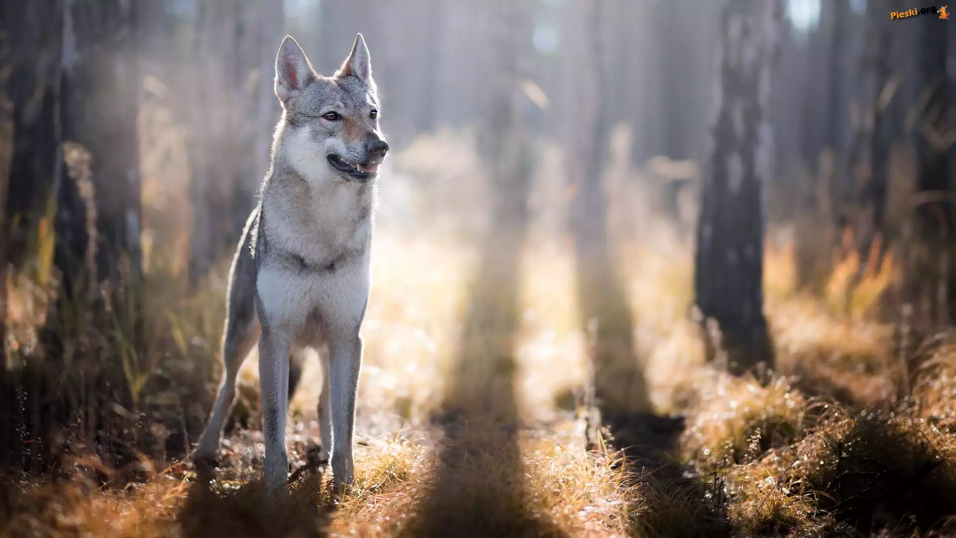 Promienie słońca, Wilczak czechosłowacki, Pies, Las, Trawa