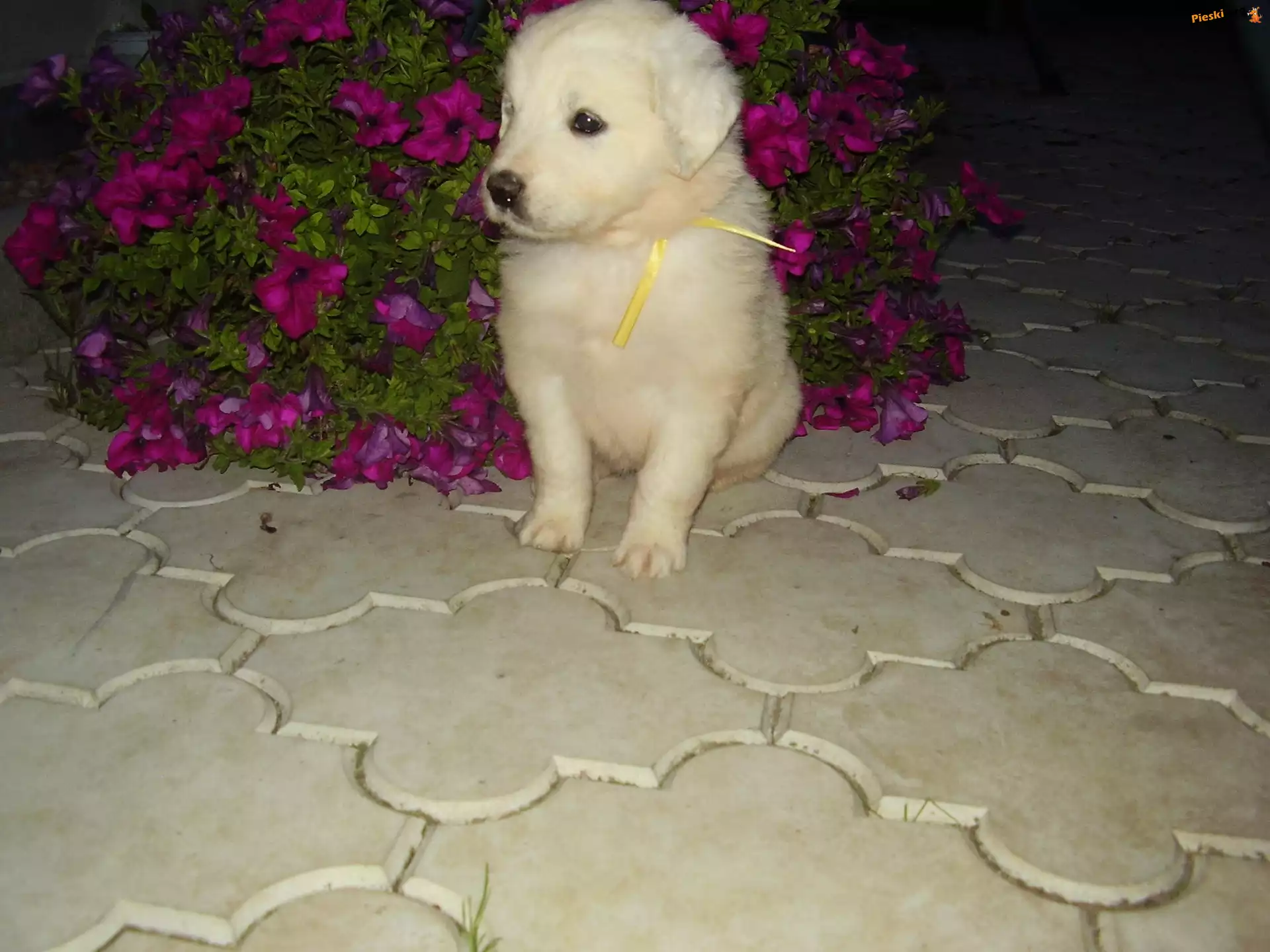 Słowacki czuwacz, różowe, kwiatki, Pieski