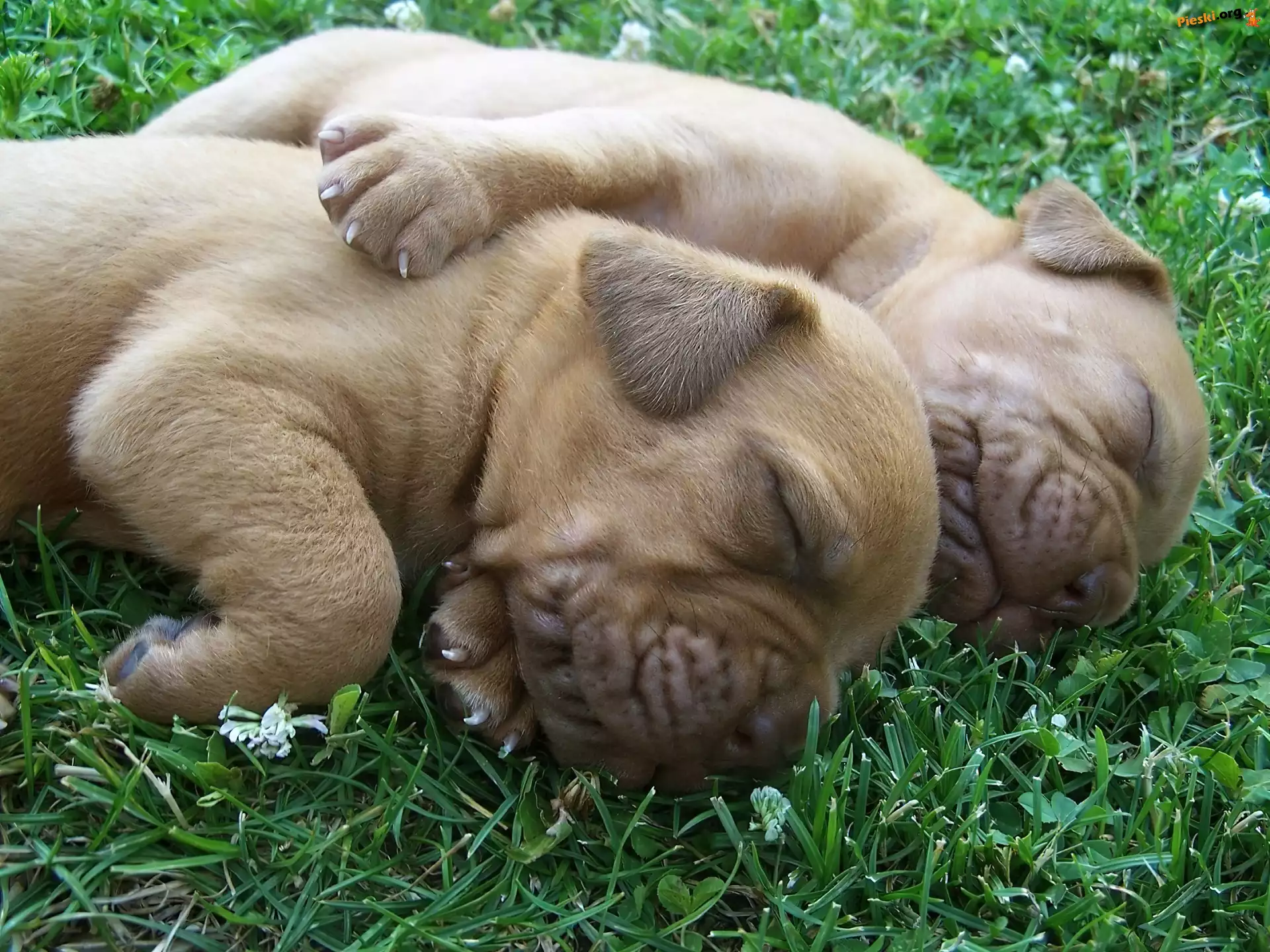Dog de Bordeaux, Trawa, Dwa, Szczeniaczki, Pieski