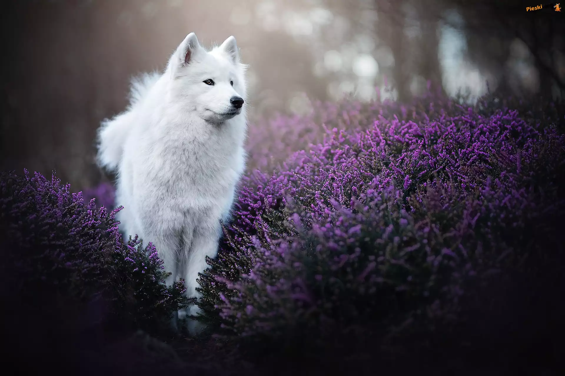 Szpic japoński, Biały, Pies, Wrzosy