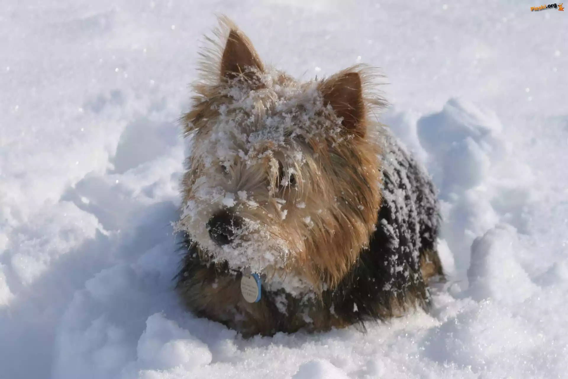 Piesek, Norwich terrier Norwich terrier, śnieg Norwich terrier Pies, Czarna, Obroża czarno-rudy, Norwich terrier